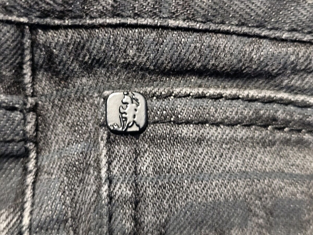 The Levis Andy Warhol Factory X Denim Jeans limited edition in women's size 29 feature a low-rise fit with a classic skinny style. Made from a blend of cotton and elastolefin, these black jeans are accented with an embroidered logo and button/zipper closure. The charcoal wash adds a touch of edgy flair, while the 5-pocket design and breathable fabric make them suitable for year-round wear. Perfect for those who appreciate art and rock-inspired fashion, these stylish jeans are a statement piece for any wardrobe.