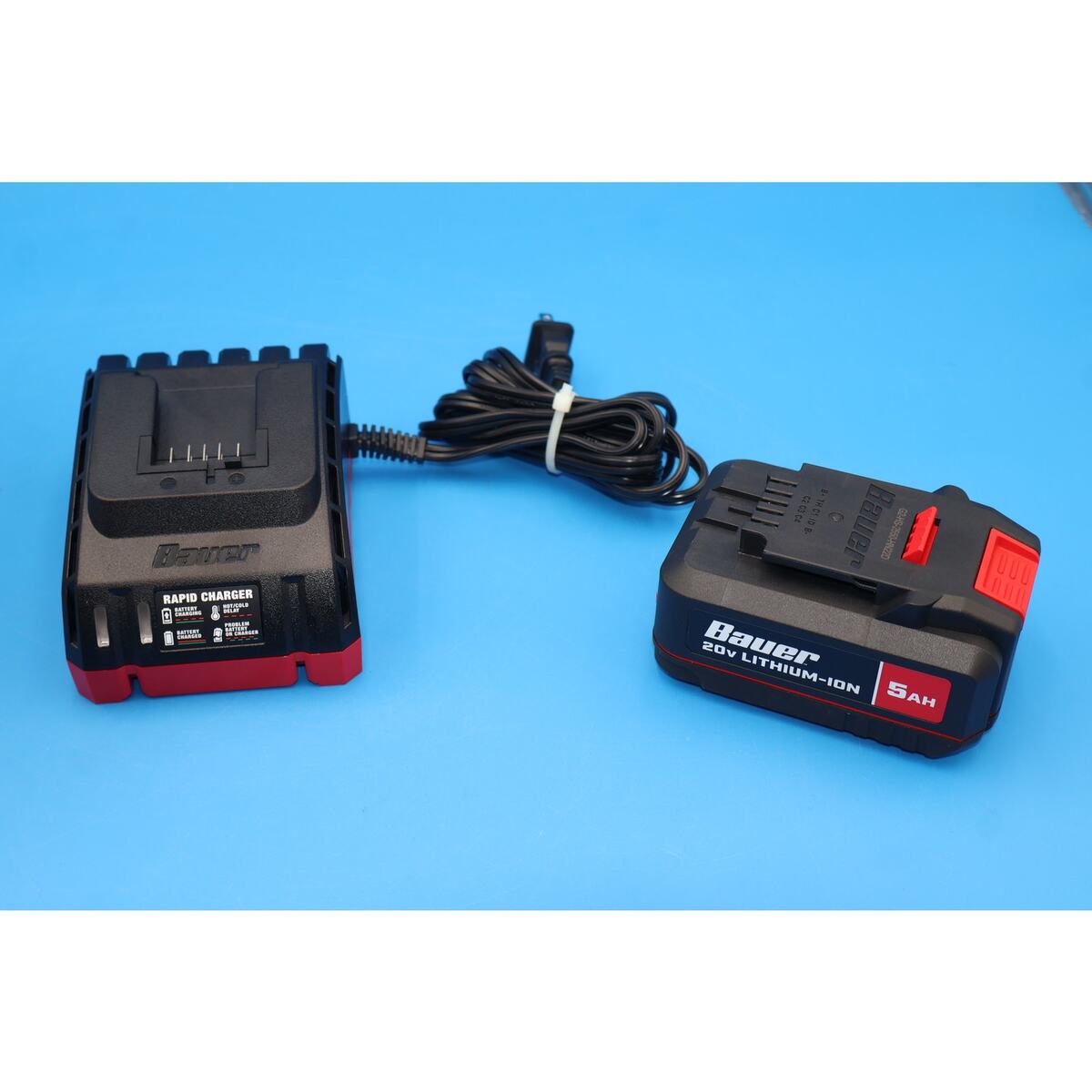 You are looking at a Bauer 2085CR-B 20V High Torque 1/2? Drive Impact Wrench with 5Ah Battery and Charger. It is used but in good condition. It does show signs of use with scuffs, scratches, and grime around the Impact Wrench and its accessories, but nothing too major or too distracting?just average wear and tear from normal everyday use.
