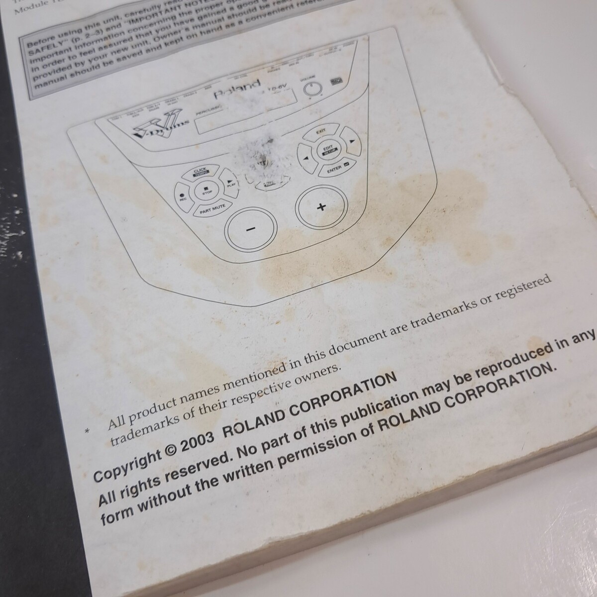 Roland TD-6V Percussion Drum Module Original Owners Manual instructions TD6V