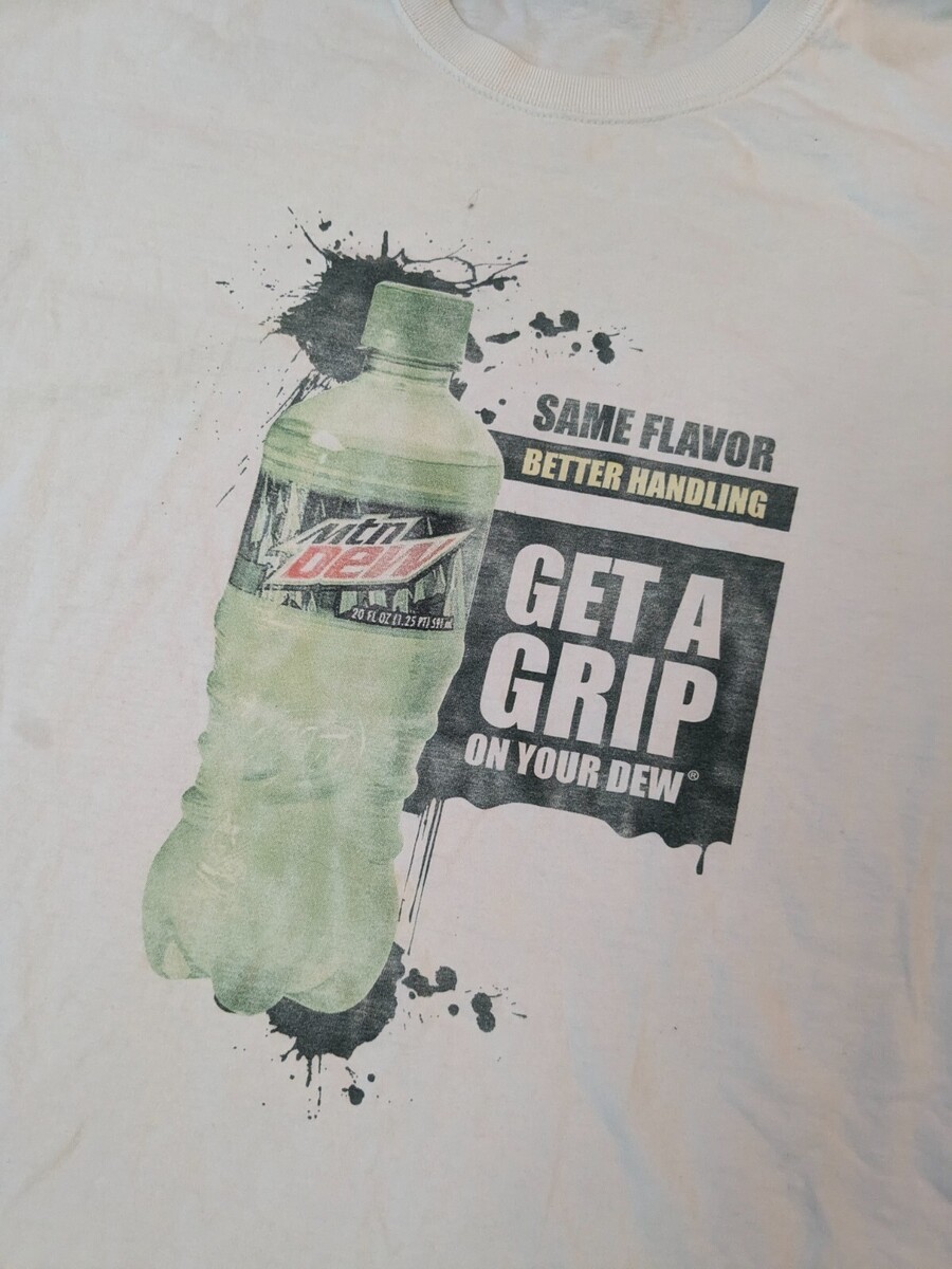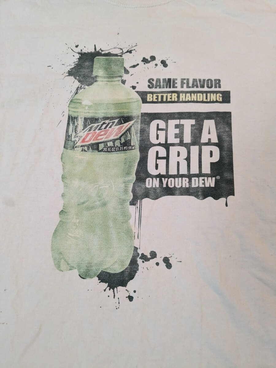 Vintage Jerzees Mountain Dew Get a Grip t-shirt shirt white promo promotional