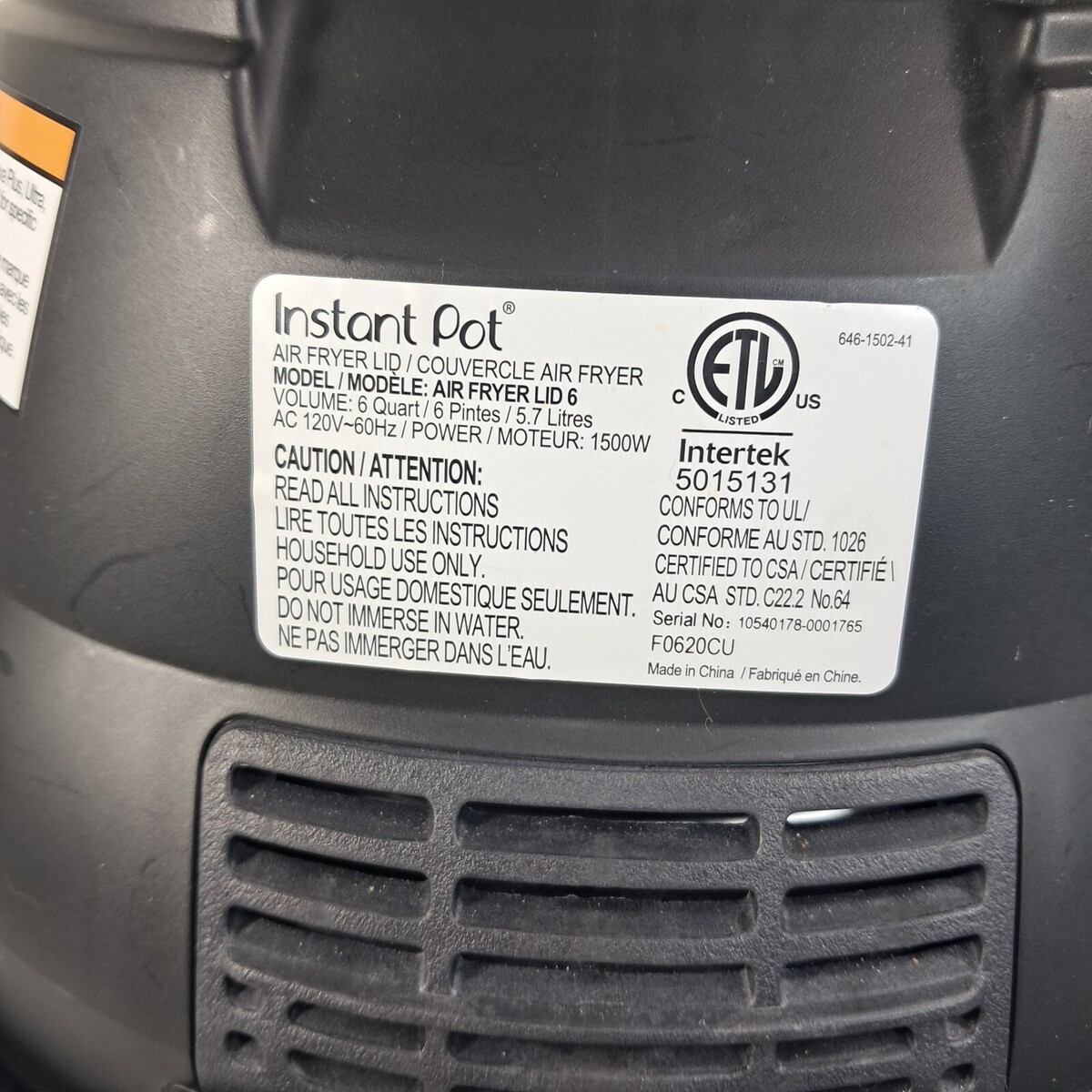Instant Pot Air Fryer Lid 6 Qt cover base Duo Crisp Cooking Instapot 6 quart