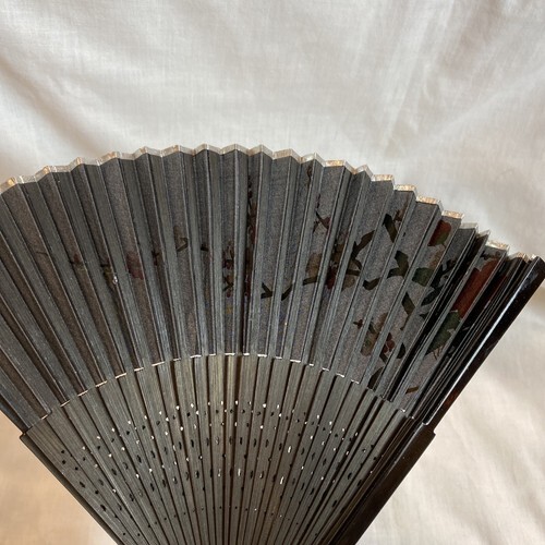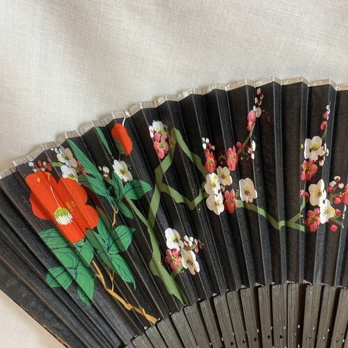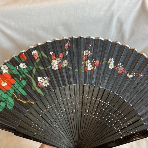 Vintage Chinese Wooden and Paper Fan Hand Painted Foldable