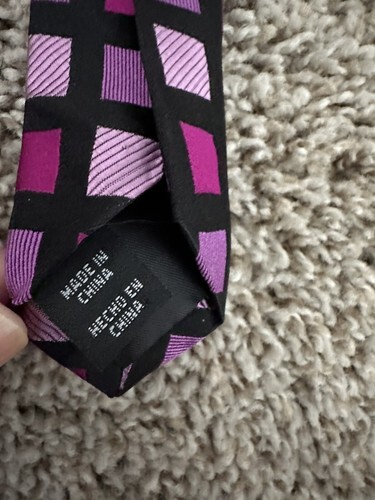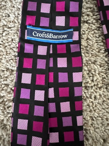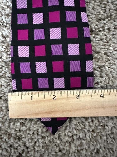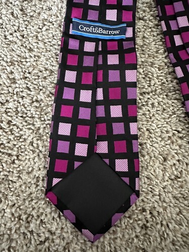 CROFT BARROW Men's Tie Purple Solid Square Print 100% Silk. Condition is Pre-owned. Shipped with USPS Ground Advantage.