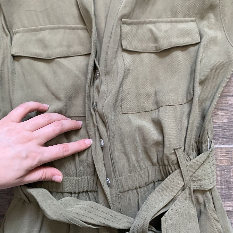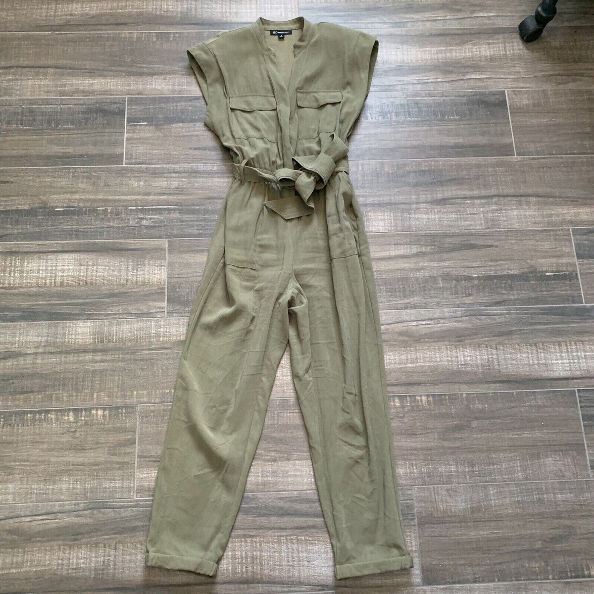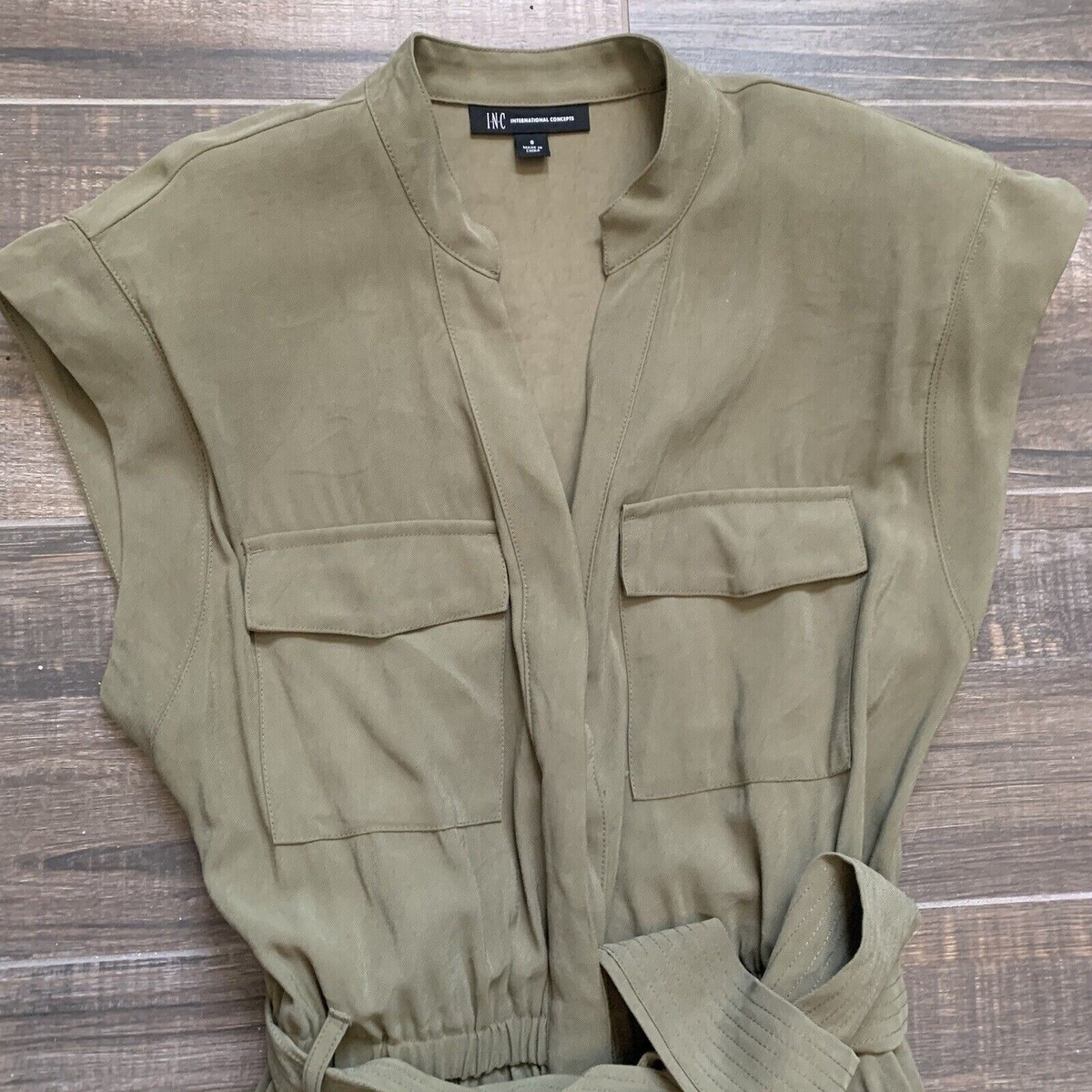 INC International Concepts Belted Utility Jumpsuit One Piece Brunt Olive Size 6