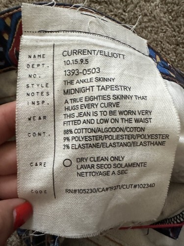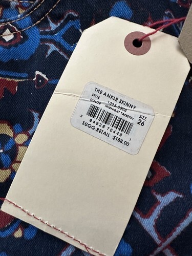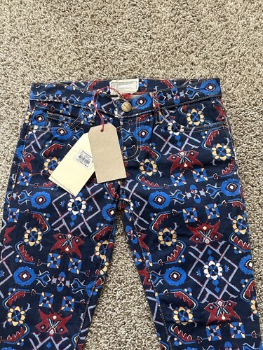 Current/Elliott Low Rise Ankle Skinny Midnight Tapestry Print Jeans Size 26 Boho