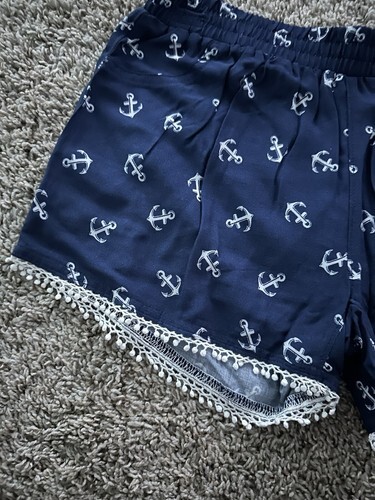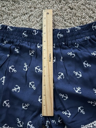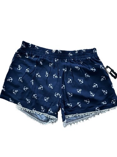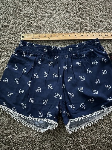 No Boundaries Blue Anchor Pattern Nautical Lace Trim Shorts Size XS Elastic