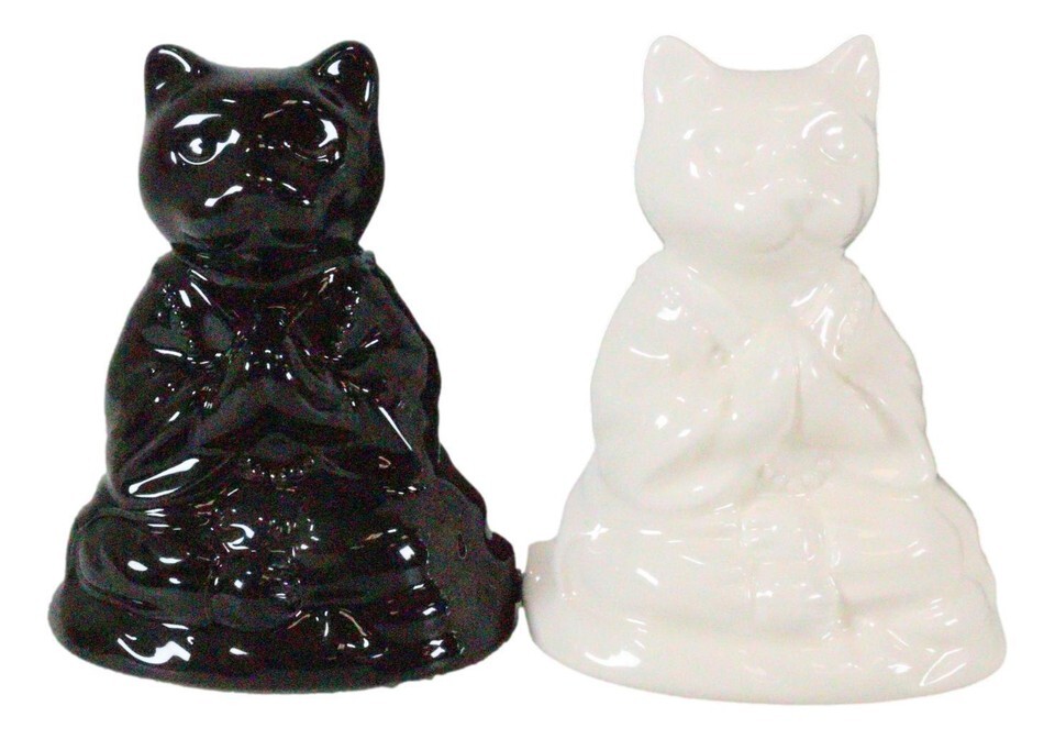 Yin Yang Zen Monk Buddha Cats Monks Meditating Ceramic Salt And Pepper Shakers
