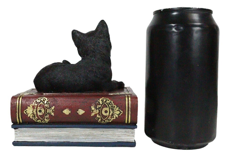 ? This Black Cat On Book Of Spells Decorative Box measures 4.75" tall, 4.25" wide and 3.25" deep approximately. The sculpture weighs about 15 ounces.