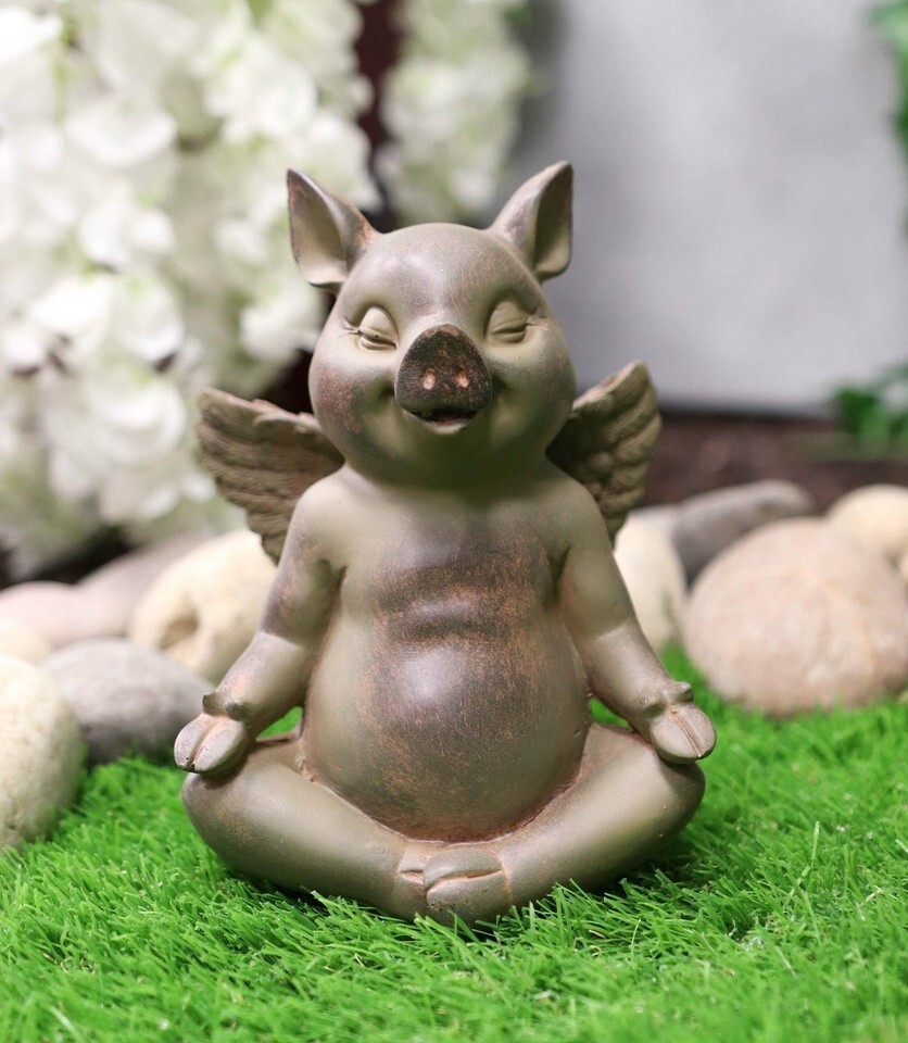 Zen Yoga Flying Pig Angel Hog Heavens Meditating In Lotus Pose Rustic Statue