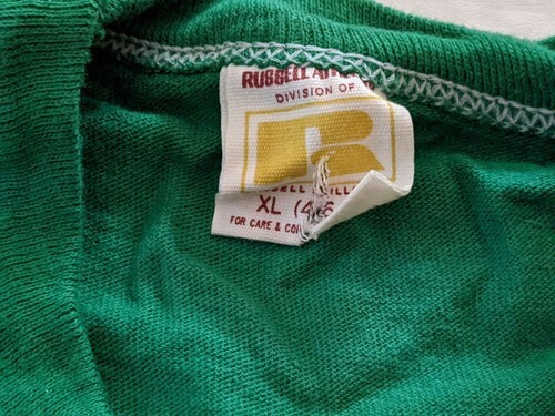 Up for sale is a used vintage 1970's French's Texaco Petroleum Gas Green Short Sleeve T-Shirt by Russel Athletic that was made in USA. Measurements: Armpit to Armpit: 19 inches Shoulder to Hem: 27 inches