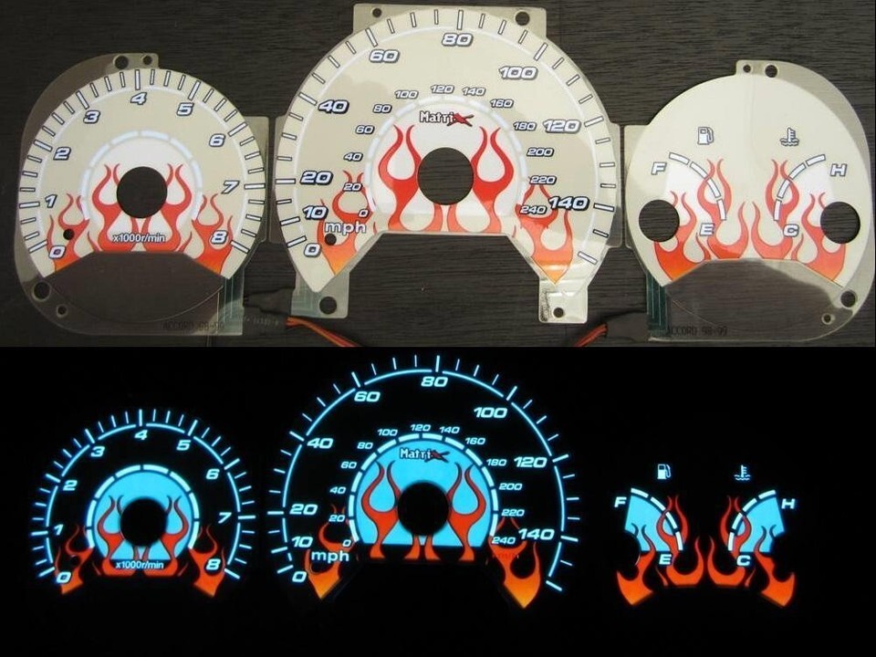 For 98-02 Honda Accord 4 Cylinder Manual Flamed White Face Reverse Glow Gauges