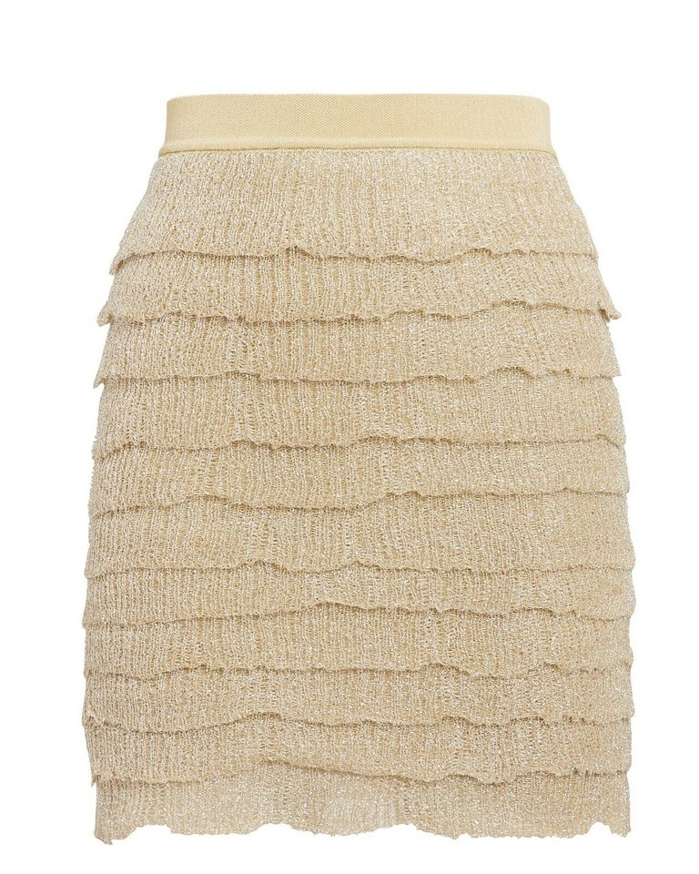 This is a great Missoni skirt. Gold metallic fuzzy knit texture skirt with tiered ruffly panels all over. Elastic fabric waistband. Brand new with $755 Intermix tags