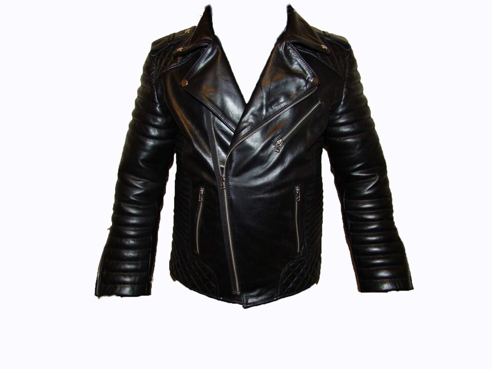 MENS GENUINE LEDER LEATHER VINTAGE 80's QUILTED ROCK BIKER JACKET PUNK 5FNn