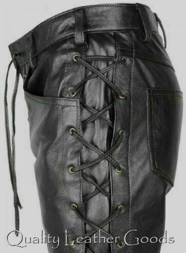 MENS LEATHER JEANS MOTORCYCLE LACING BIKER BREECHES PANTS TROUSERS 88 FN BLUF