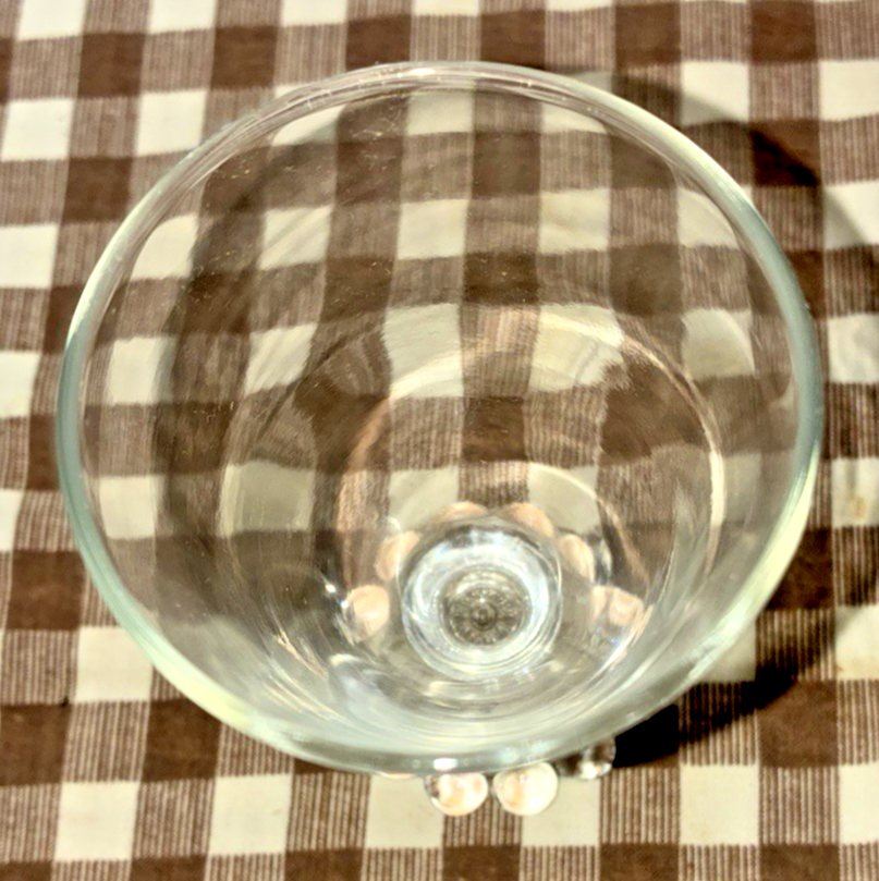This vintage Anchor Hocking Boopie Glass cocktail glass is a 4" tall, round glassware piece with an etched design from the 1950s. Crafted in the United States, this clear glass dessert glass is perfect for all occasions, especially for serving cold beverages. The mid-century modernism style and 1950s pattern make it a collectible item for those who appreciate glassware and barware pieces from that era. Hand wash only to preserve its originality and charm.