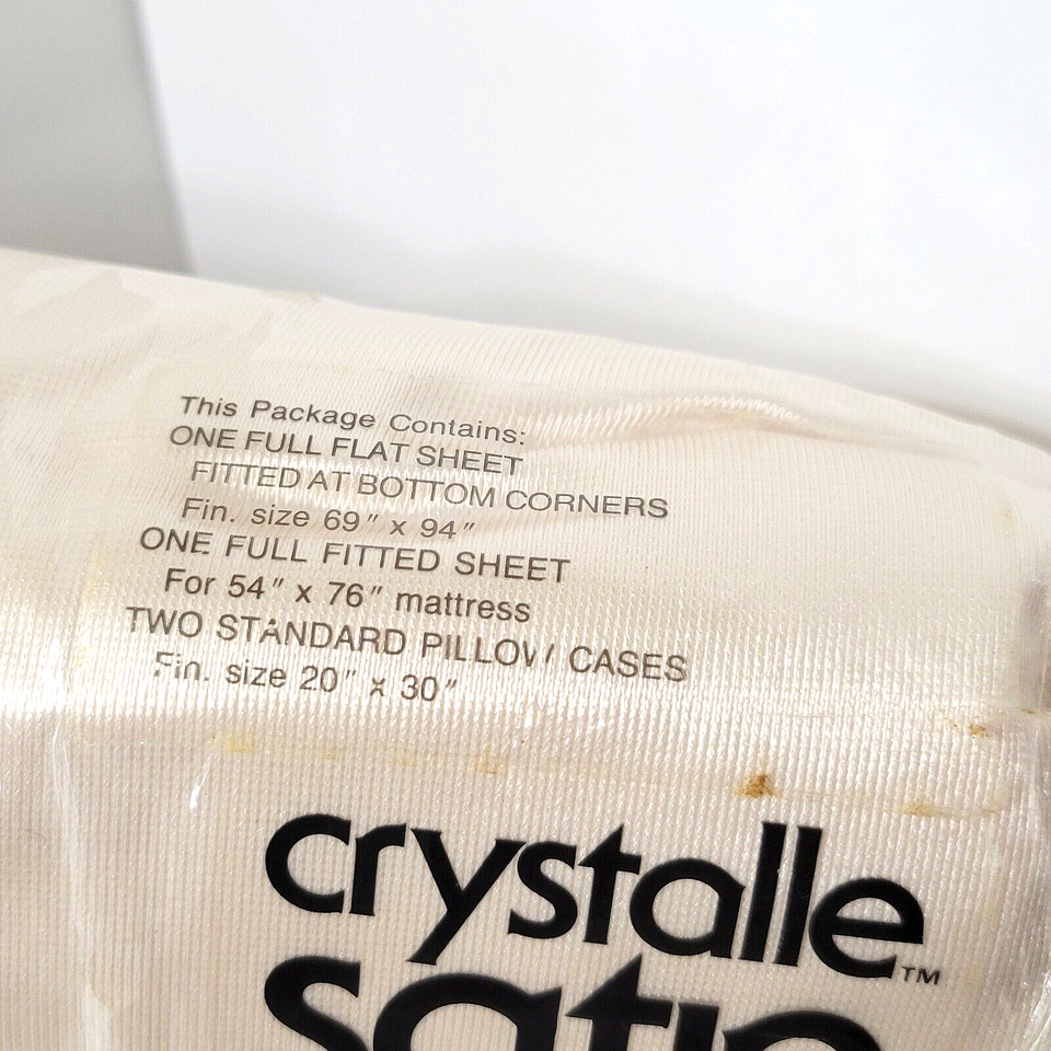 Full Size Satin Sheet Set NIP Vtg 4 Pieces Cream Whisper Soft Mills Machine Wash