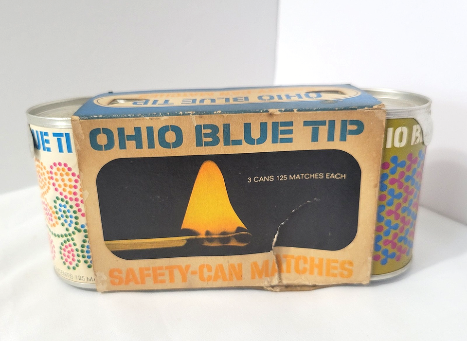 Ohio Blue Tip Safety-Can Matches, original packaging, rare Saul Bass designs on the cans