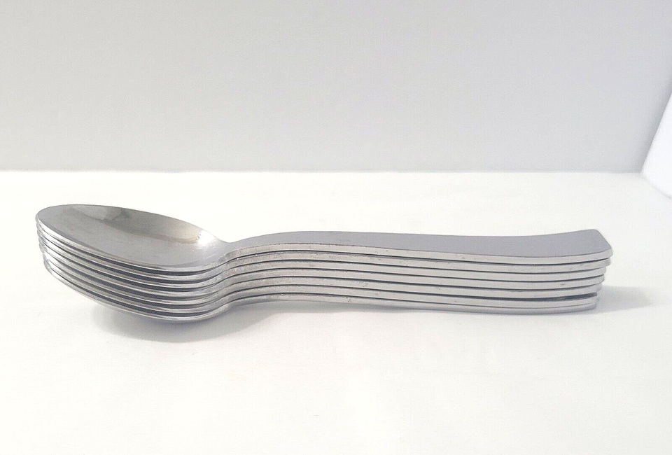 Set of 7 Godinger CASTELLO Oval Place Soup Spoons Hammered Stainless Flatware