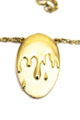 Nice Janette ( JJ) signed necklace featuring an egg dripping with gold. The necklace is 18?, the egg is 1 3/4. Eggcellent condition.