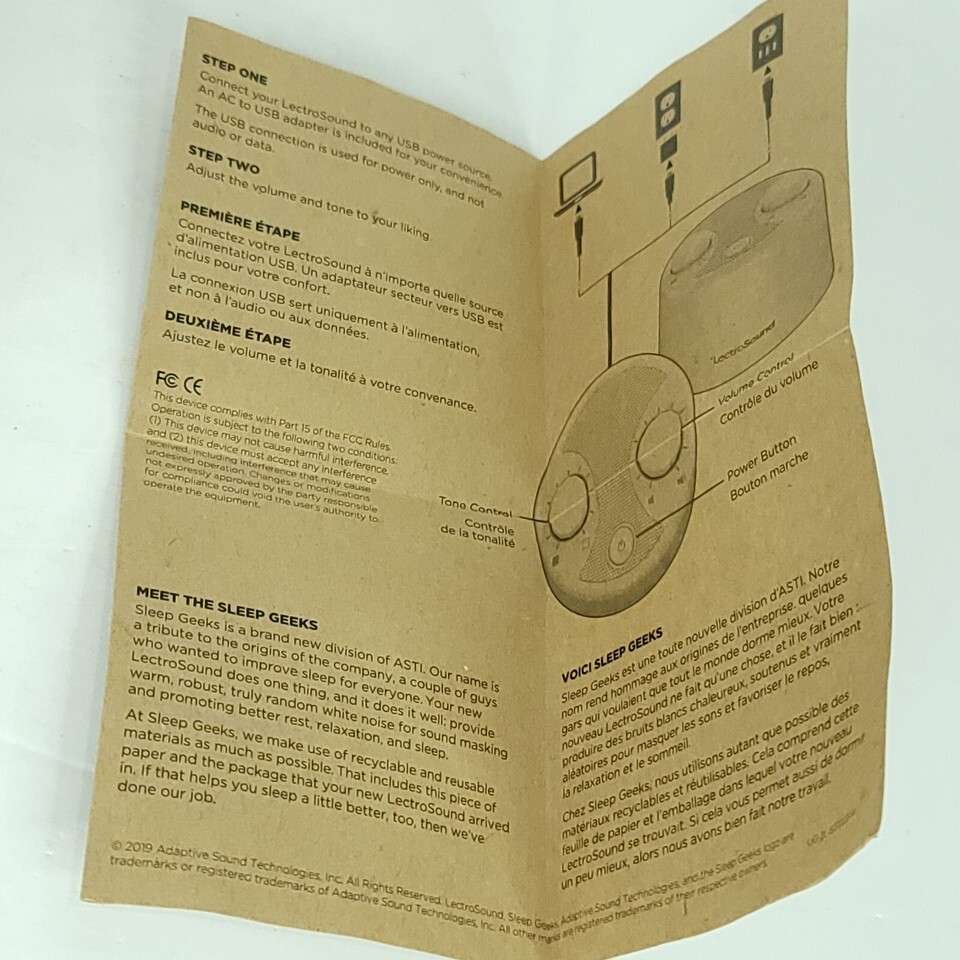 White Noise Sound Machine Sleep Aid Therapy Relax USB Lectrosound Tone Control