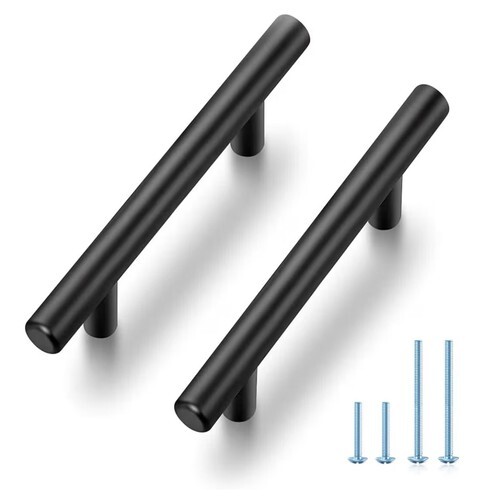 Hickory Hardware 10 Pack Kitchen Cabinet Handles, Drawer Pulls for Doors Dresser Drawers, Hardware for Bathroom, 3-3/4 Inch (96mm) Center to Center, Matte Black, Heritage Collection