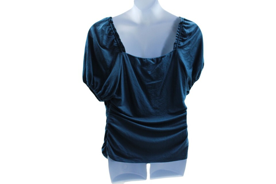 Women Top And Now This Plus Size Puff Sleeve Ruched Sides Top Size 2X Blue