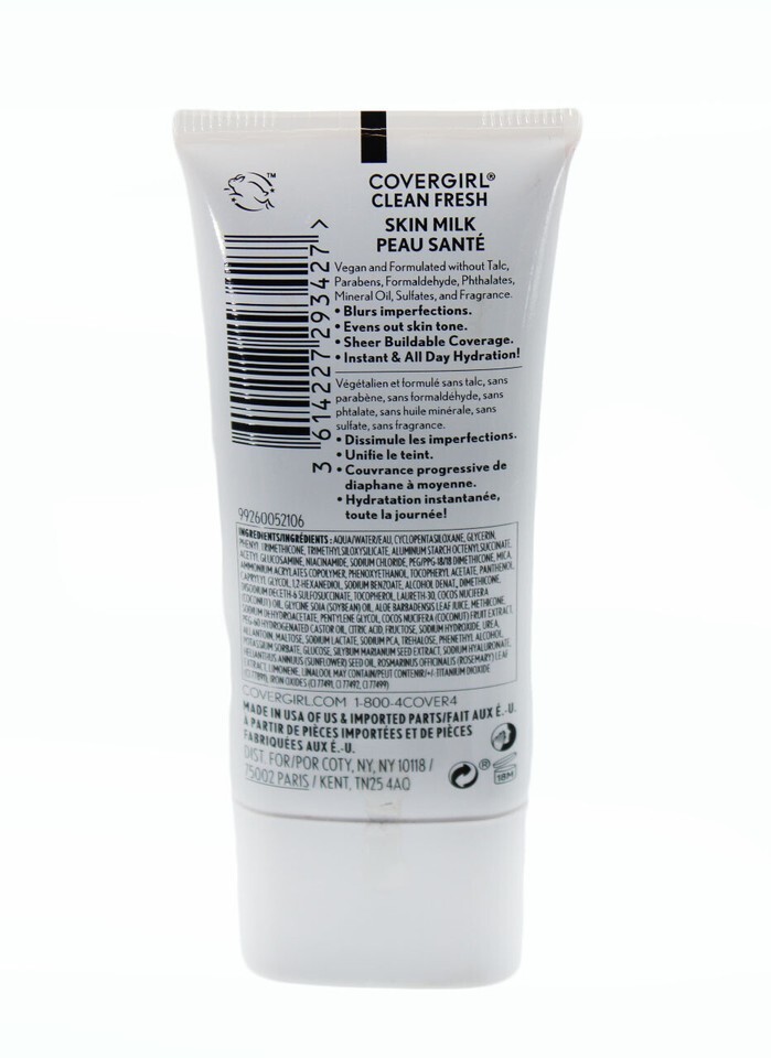 The COVERGIRL Clean Fresh Skin Milk Foundation is just what your skin needs. This light, nourishing liquid foundation sits beautifully on all skin tones without looking cakey or heavy. It's the perfect option for a naturally healthy glow! This hydrating foundation is perfect for all skin types, including people with sensitive skin. This lightweight foundation provides light coverage while still leaving your skin looking flawless. It contains ingredients that are good for your skin like coconut milk and aloe extract.