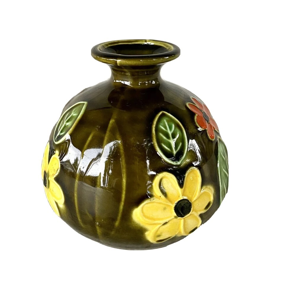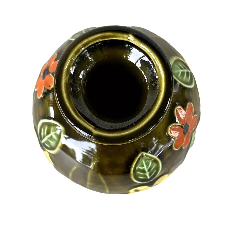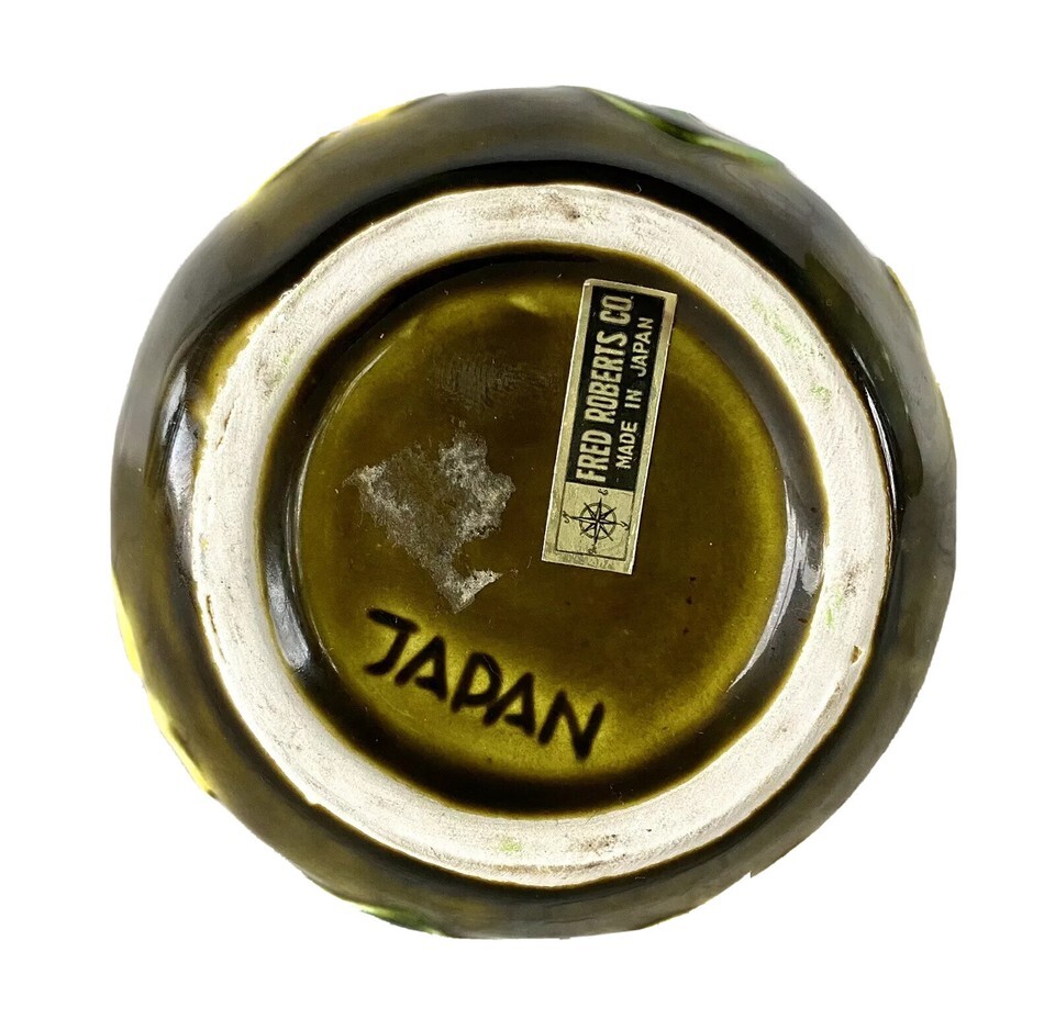 Fred Roberts Vintage Ceramic Bud Vase Floral Glazed Japan Green Orange Yellow