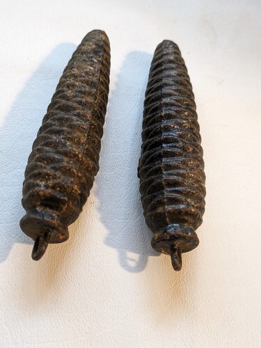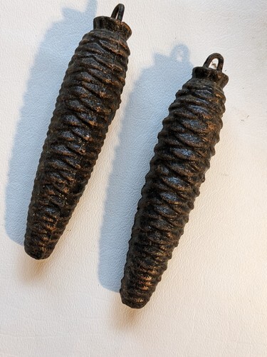 Questo lotto include due 275 pesi di orologio per cucù, con un peso che pesa 285 g e l'altro che pesa 290 g. I pesi sono realizzati in metallo e sono compatibili con orologi per cucù. Misurano 4,75 pollici o 120 mm di lunghezza e arrivano in coppia. Gli oggetti in questo lotto sono ottimi per i collezionisti di oggetti decorativi o per quelli che necessitano di parti di sostituzione per i loro orologi per cucù. I pesi sono antichi e aggiungono un tocco vintage a qualsiasi raccolta o orologio. Acquista questo lotto e aggiungi questi pesi alla tua collezione o all'orologio oggi!