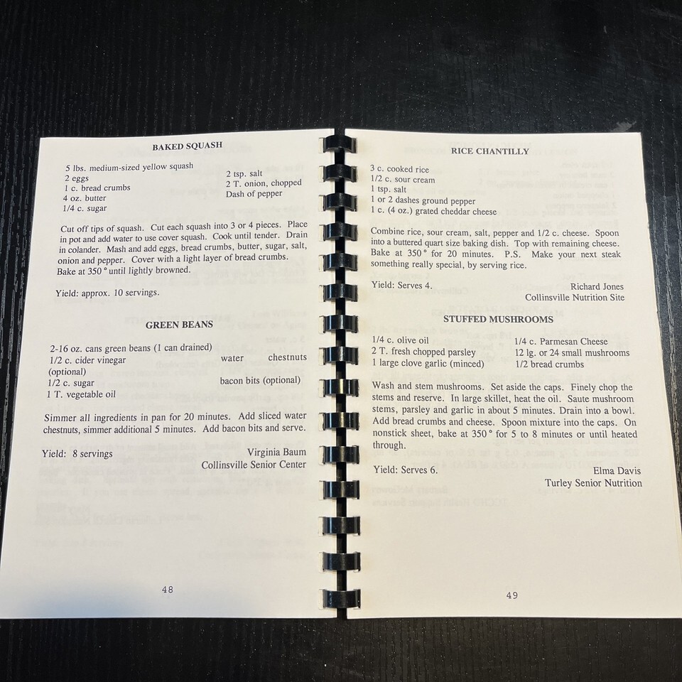 This vintage spiral-bound cookbook, 'Grandmother's Favorites: Time Tested Recipes,' is a wonderful example of classic American community fundraising publications. Its cover, featuring a nostalgic illustration of a grandmother in her kitchen, evokes a sense of tradition and time-honored home cooking. While the specific sponsoring organization is not identified on the cover, the format is quintessential of church and club cookbooks, filled with beloved family recipes. This collection is a treasure for anyone seeking authentic, comforting American dishes or for collectors of regional culinary history.