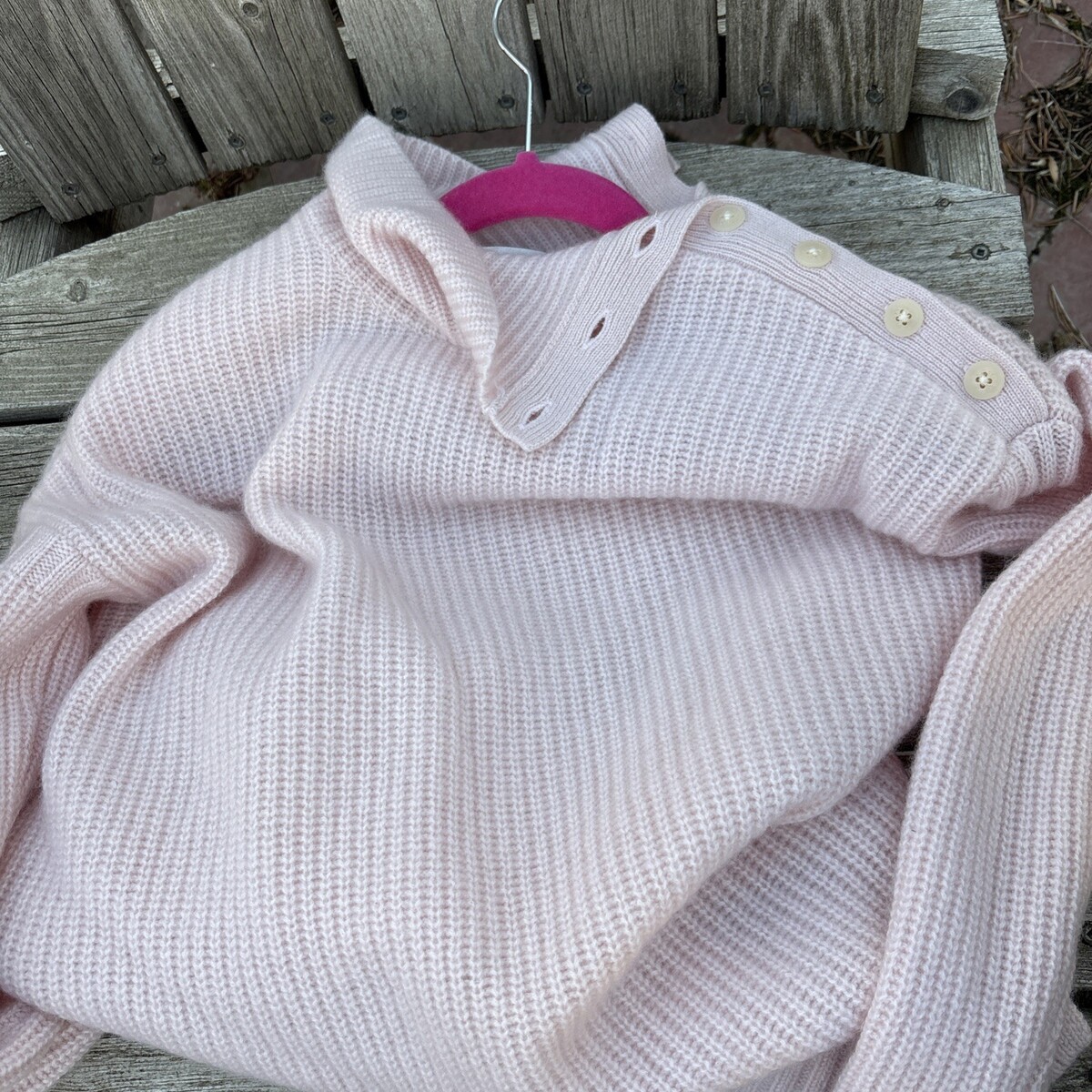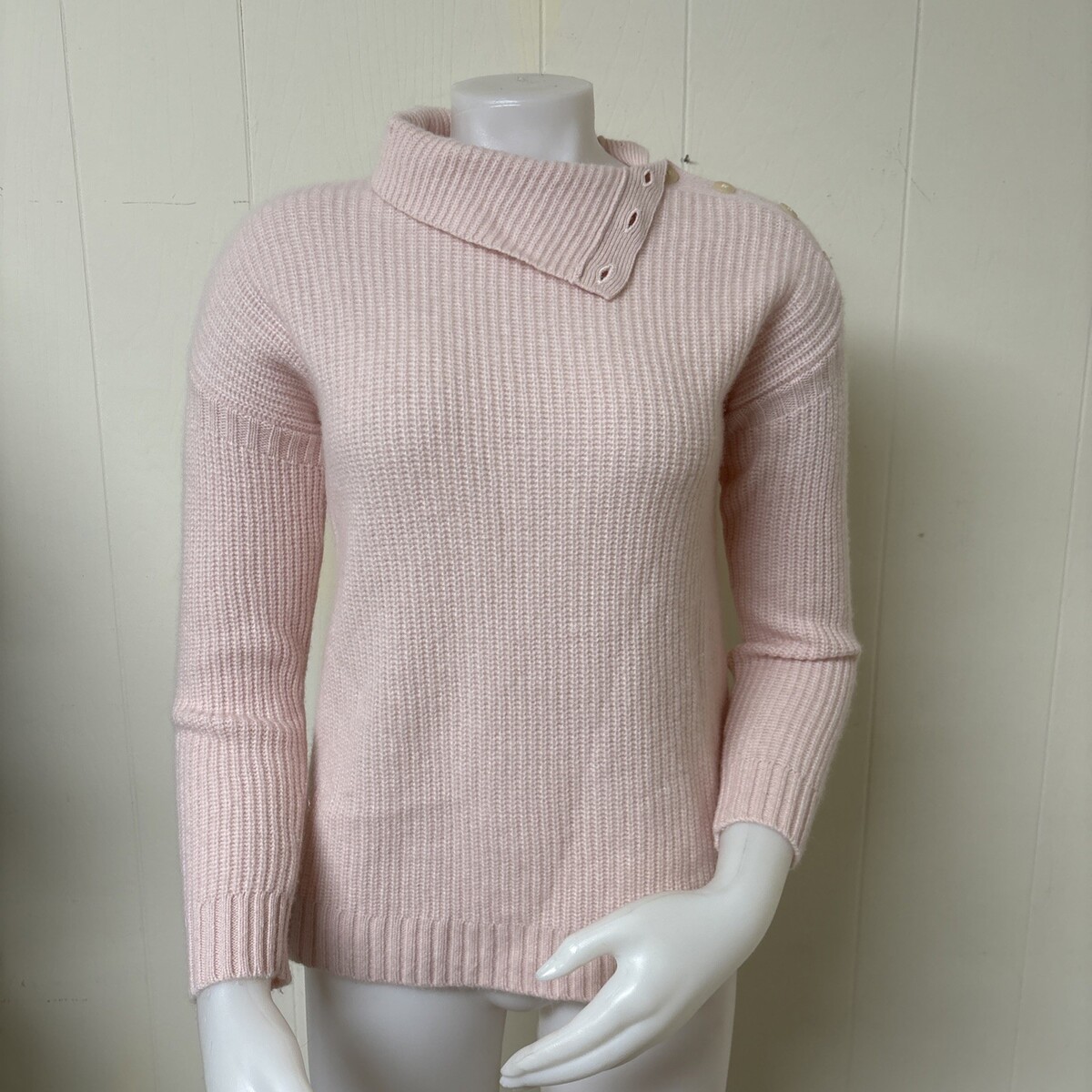 Garnet Hill Sweater Womens Small Pink Cashmere Button Shoulder Mockneck Pullover