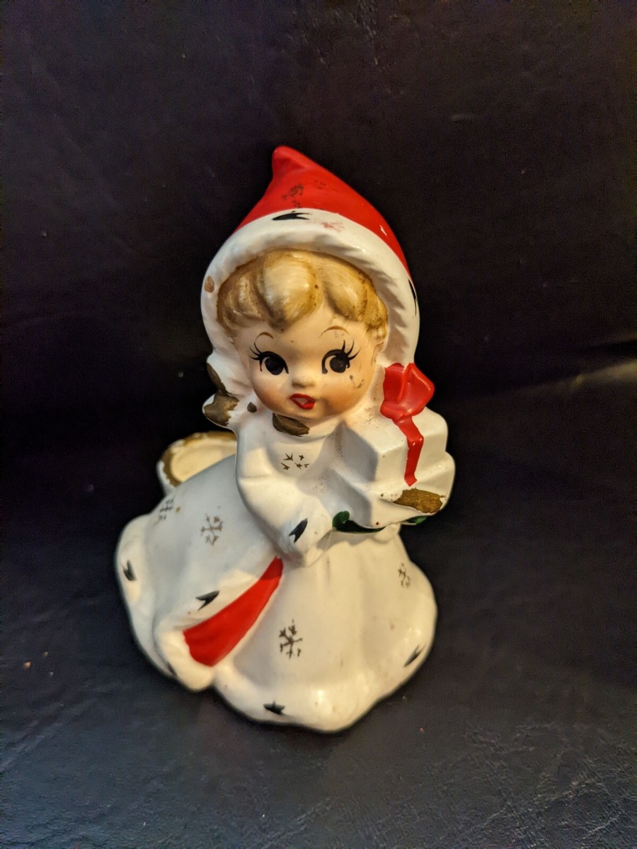 Vintage Napco Ceramic Snowflake Cute Girls Figurine Candle Holder Gift 4 Inches
