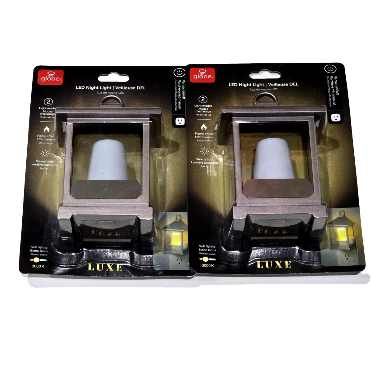 2 Pack Globe LED Night Light 2 Light Modes Manual On Off Flame Effect Luxe 3000k