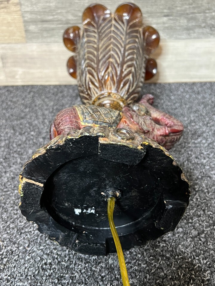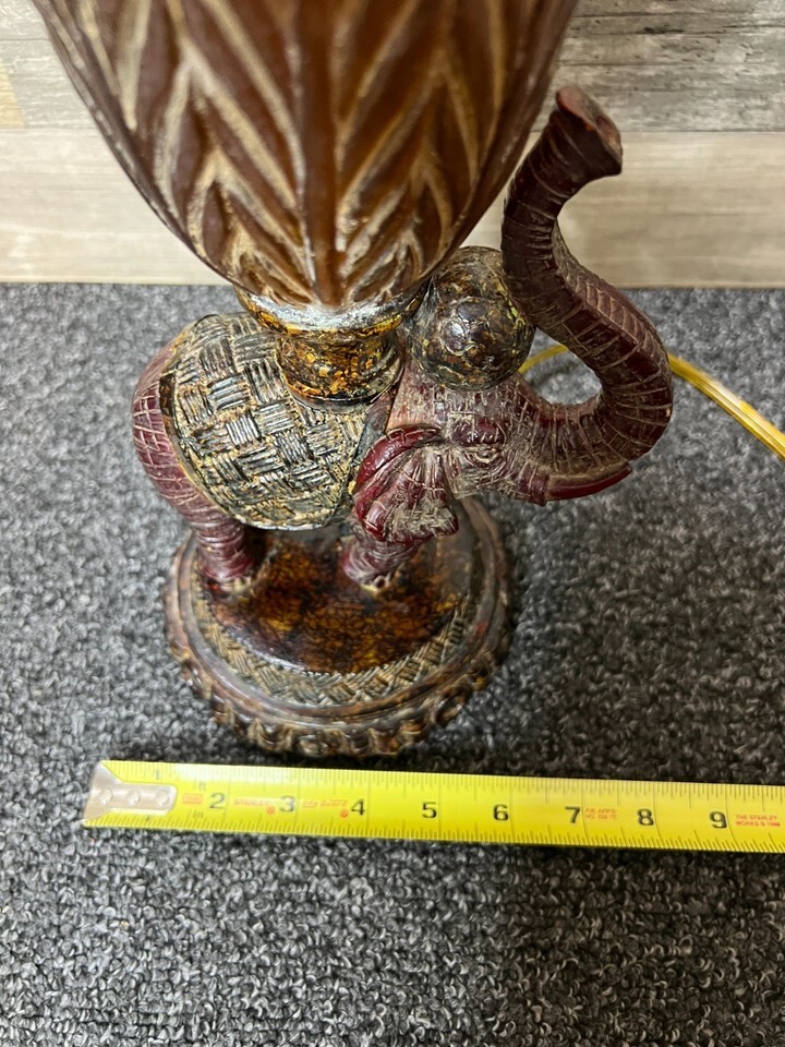 The item for sale is a beautiful vintage Elephant Lamp Brown Accent Night Light w/ Shade For Good Luck. Made with some sort of resin or acrylic material. In good used condition with minor age-related wear.