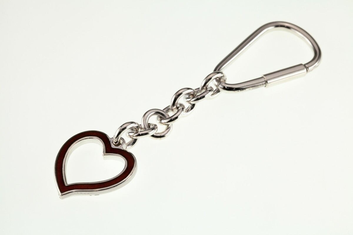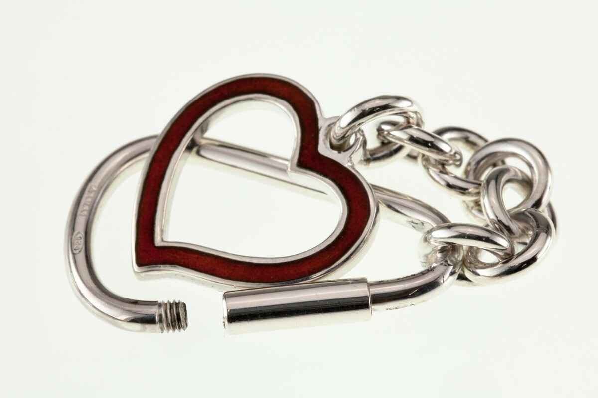 Gorgeous Sterling Silver Key Ring/Chain with a Open Heart with Enamel Inlay. I would describe the color as a dark red/orange All shipments include insurance and delivery confirmation or signature confirmation. Local Pick-up is available in our showroom. All international packages will have the required customs declaration and value of order. Your continuing satisfaction is very important to us. We offer a 30 day money back return policy. If you are unhappy with your purchase for any reason, please notify us so that we can begin the returns process. All items for sale are available for viewing at our Southern California showroom. We would like to thank all of our loyal customers for their continued support. If you have any questions, comments or concerns, please click "Ask a question" b