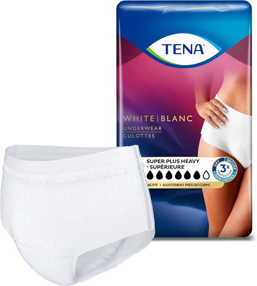 TENA Stylish incontinence and postpartum underwear for women, featuring Super Plus absorbency for day or night use. Designed for a discreet, body-hugging fit with reliable leak and odor control.