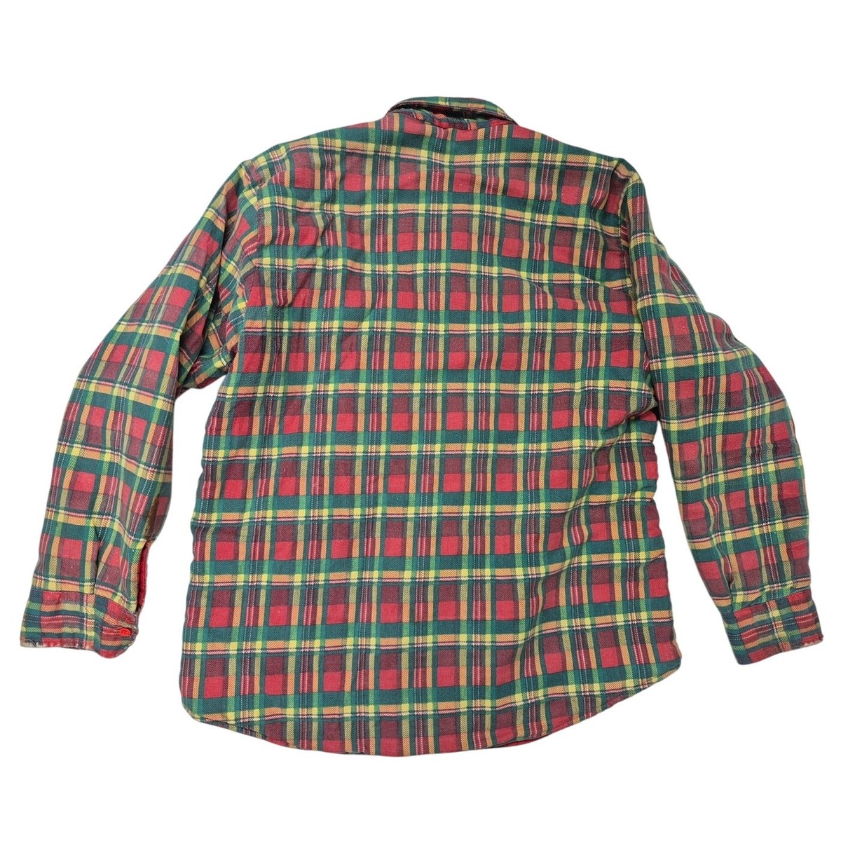 Vtg Rugged Wear Bog Cotton Plaid Green/Red Shirt-Jac Quilted Lining Mens L/XL