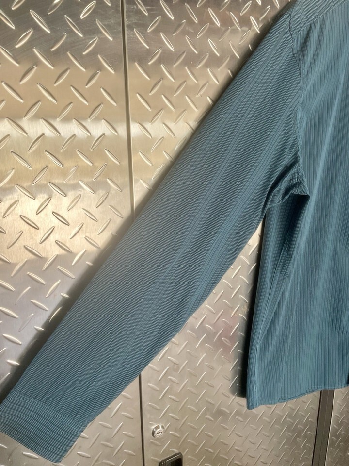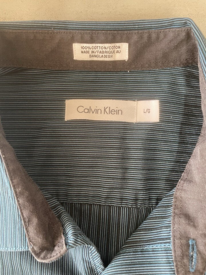 Calvin Klein Men’s Easy Shirt Long Sleeve Button Down Green Striped 100% Cotton