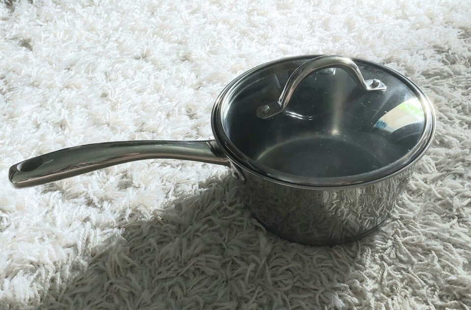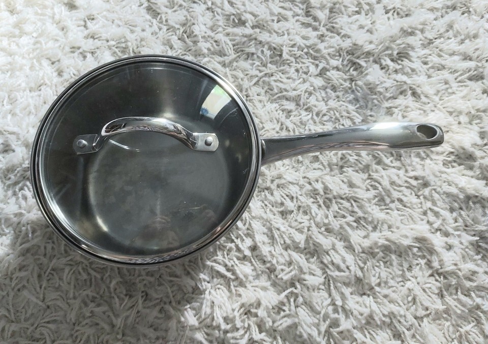 This is a nice 18/10 stainless steel saucepan with a glass and stainless lid from Tramontina. Holds 3.1 Liters/3.27 quarts. It?s about 20 years old, but is in overall very good condition with some minor scratches.