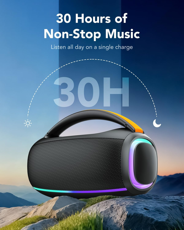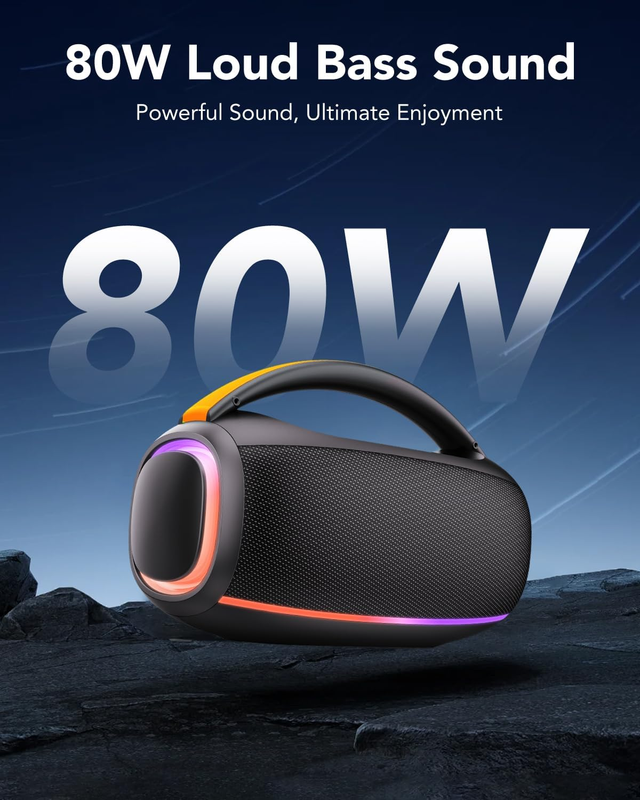 Bluetooth Speaker 80W, 30H Playtime, IPX7 Waterproof, TWS Stereo, Portable Outdo