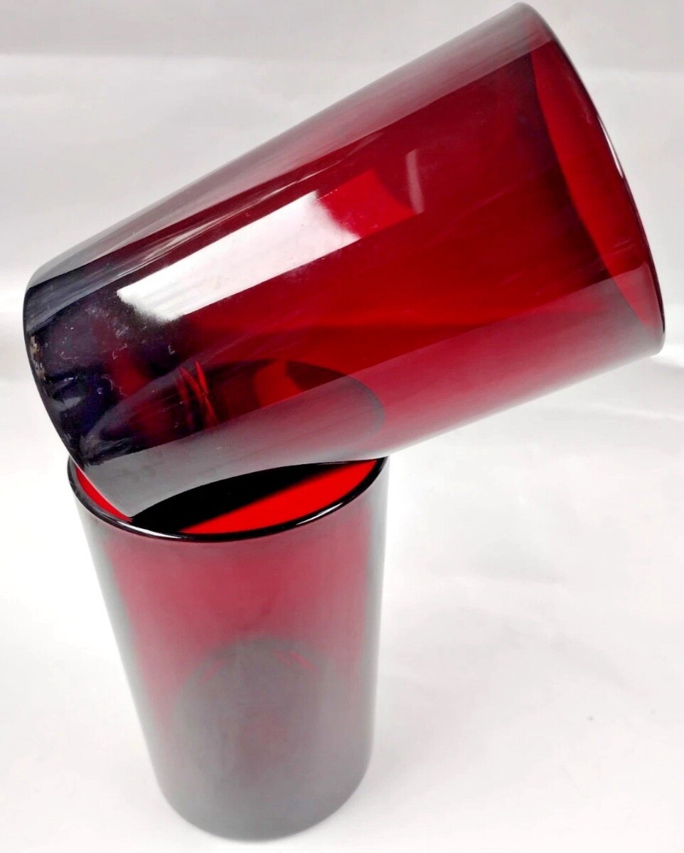 Pair of Red Hand-Blown 16oz Drinking Glass 5"Tall