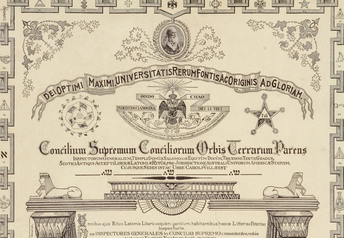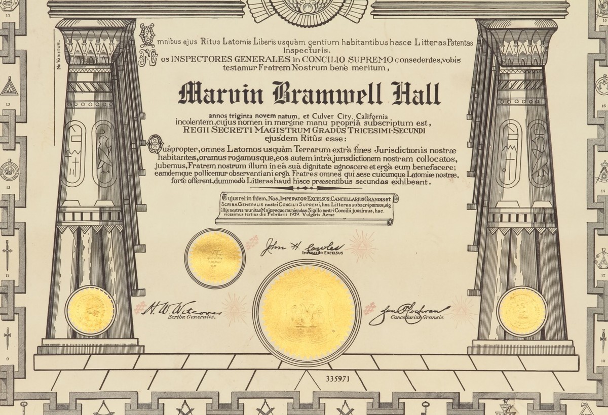 1929 Freemason Masonic Degree Certificate in Frame Gorgeous Memorabilia