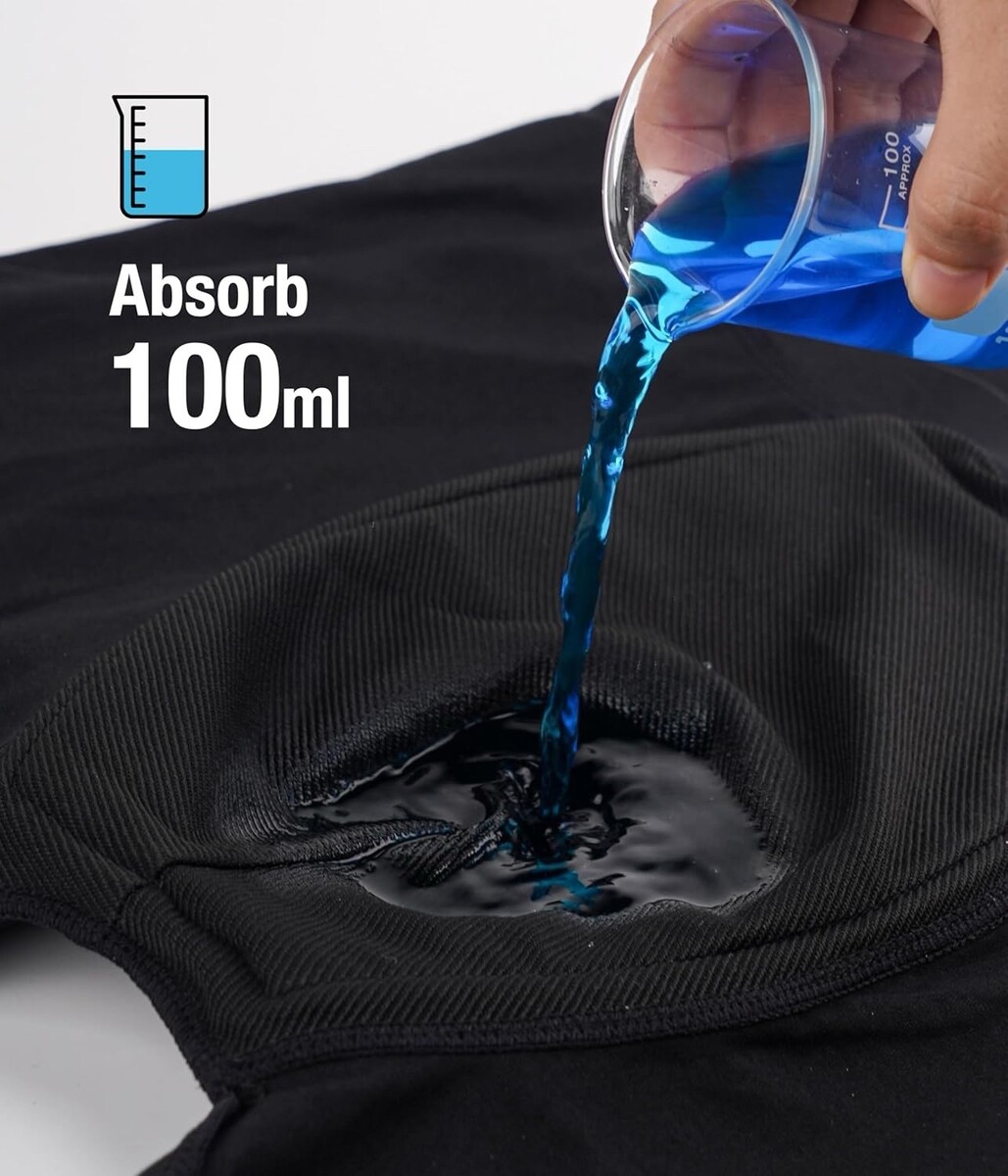 Constructed with a 4-layer protection system, including a moisture-wicking inner cotton layer, high-absorbency liner, leakproof barrier, and comfortable outer cotton layer. These boxer briefs provide full-coverage leak protection without bulk, rustling, or a diaper-style appearance.