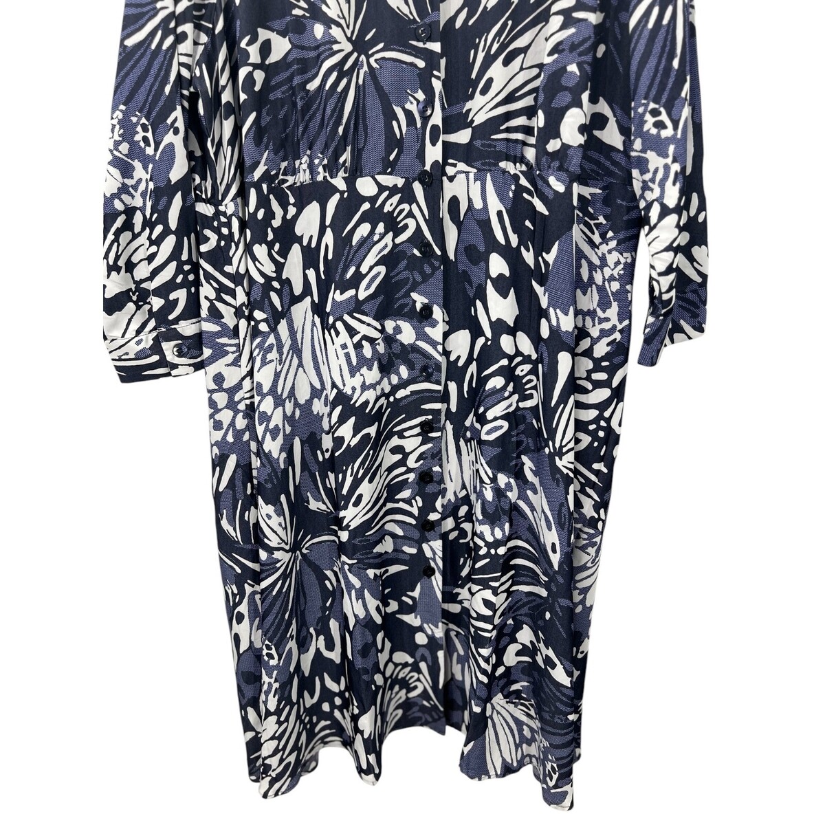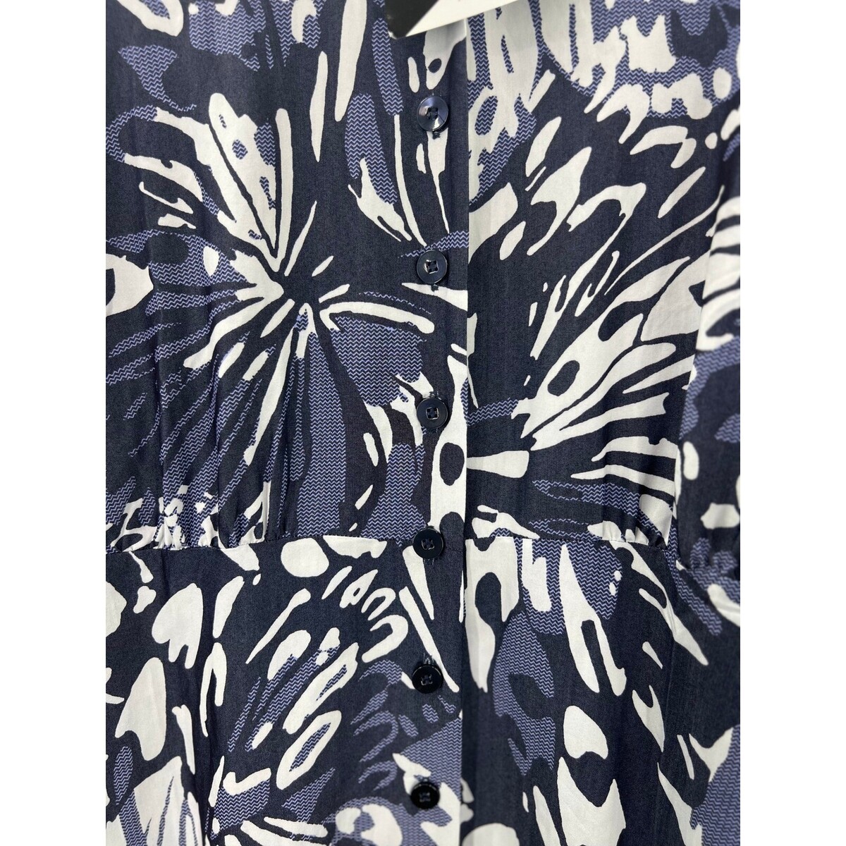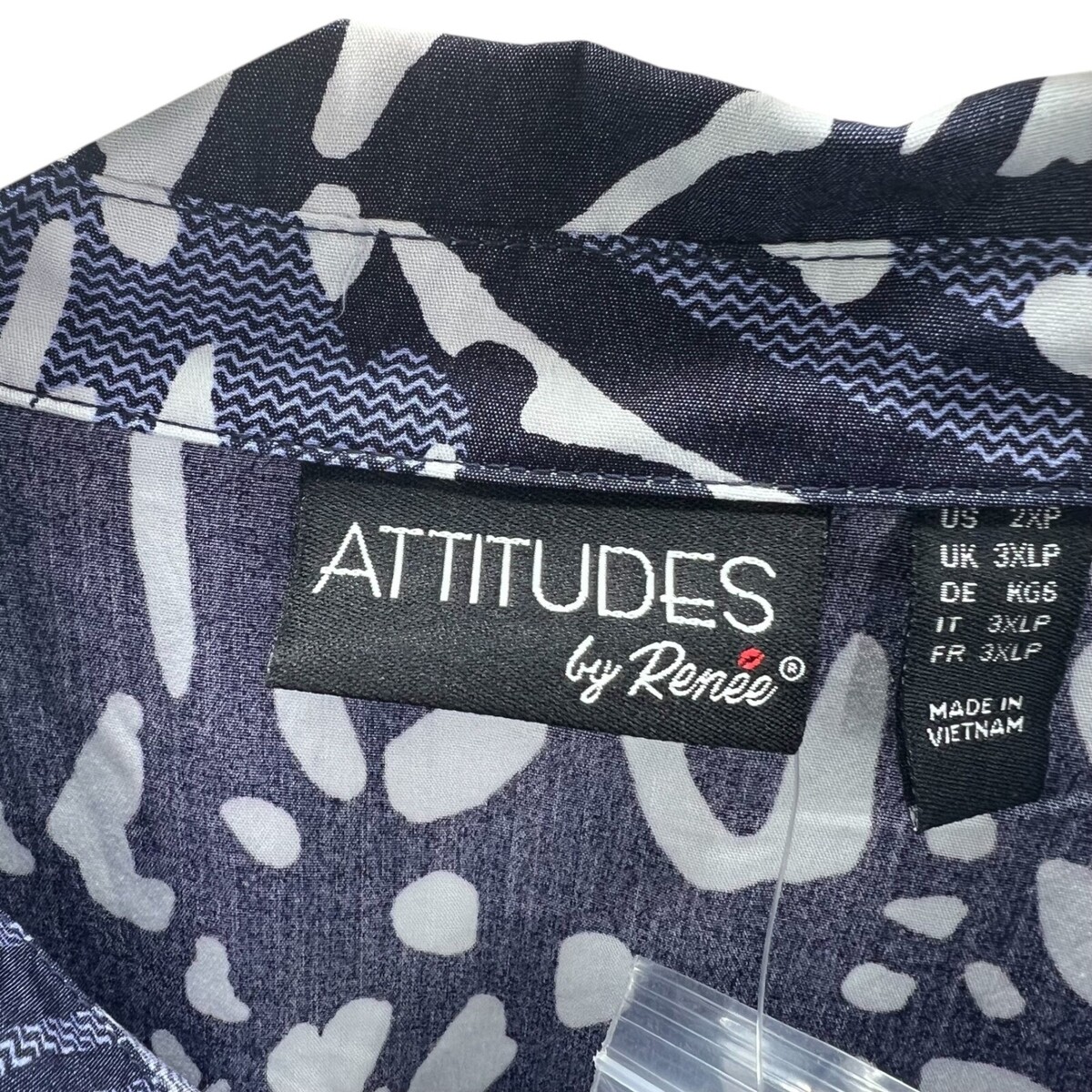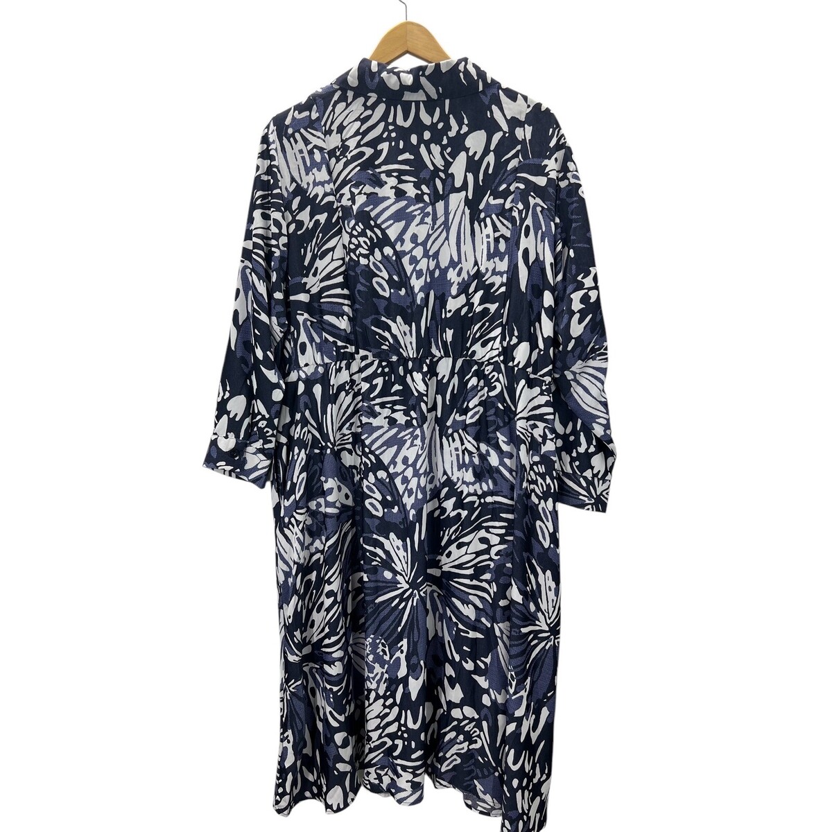 Keywords: Attitudes by Renee, shirt dress, button down dress, plus size dress, 2XP, dressy casual, long sleeve dress, abstract print, women's fashion, new with tags, work dress, day dress, navy dress, white dress, duster