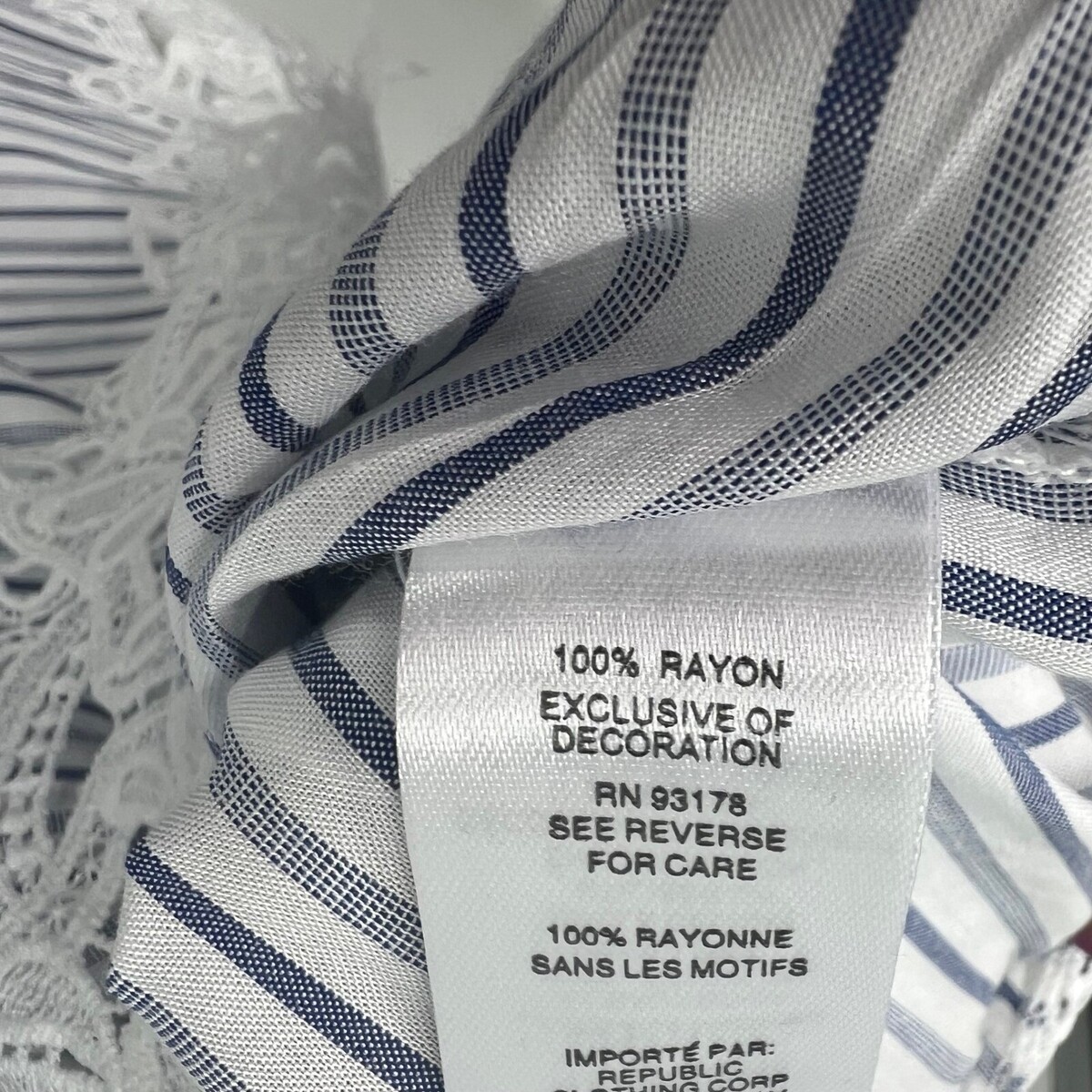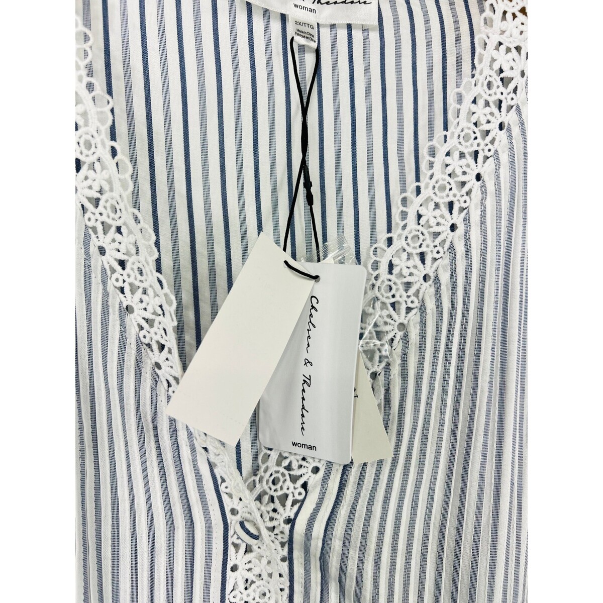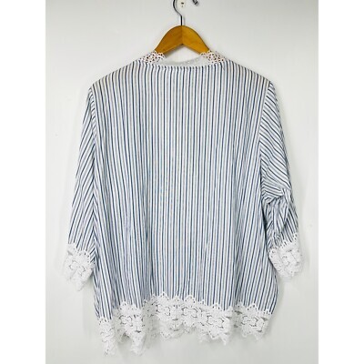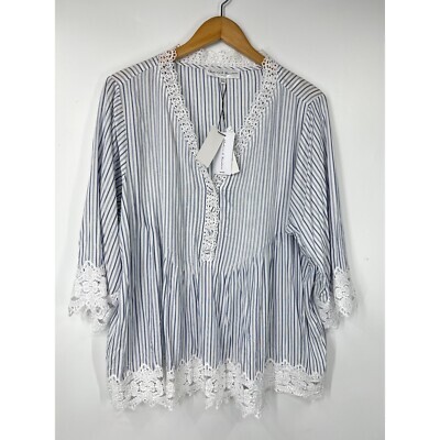 Chelsea & Theodore Sz 2X Blue White Peasant Striped Tunic Lace Trim Boho Blouse