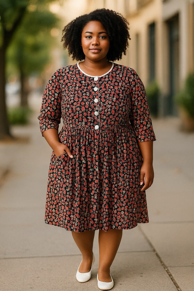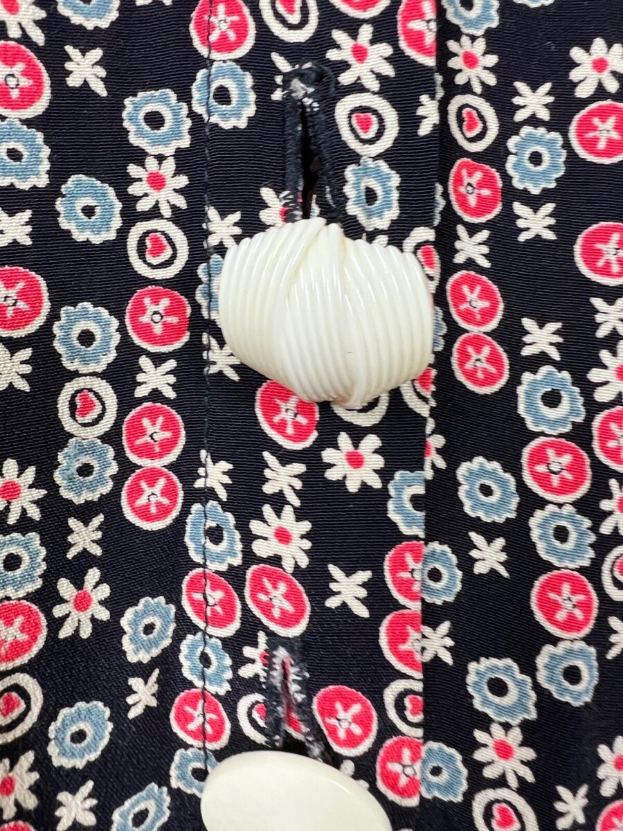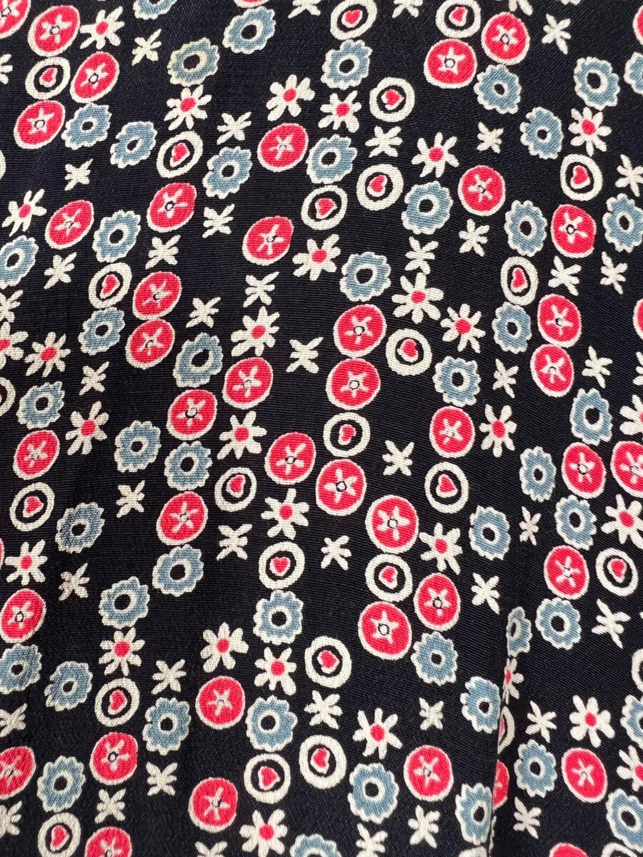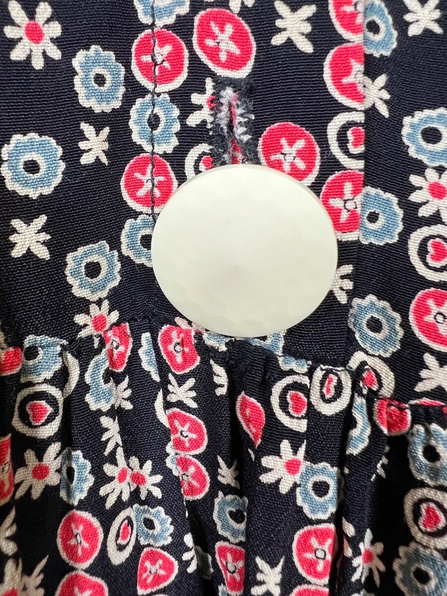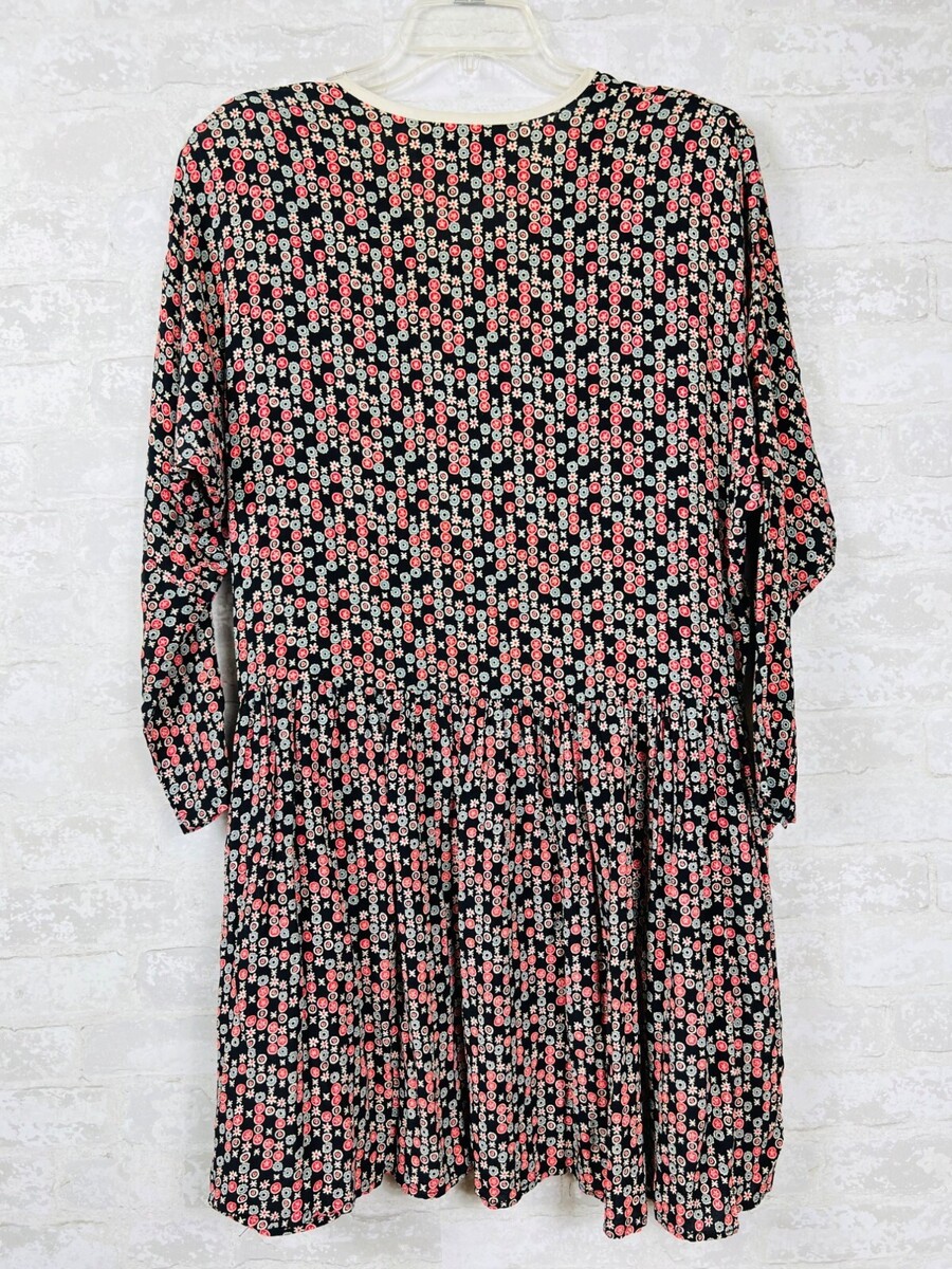 Vintage Janice McCarty Floral Button-Front Tunic Dress S Black Red White Pockets