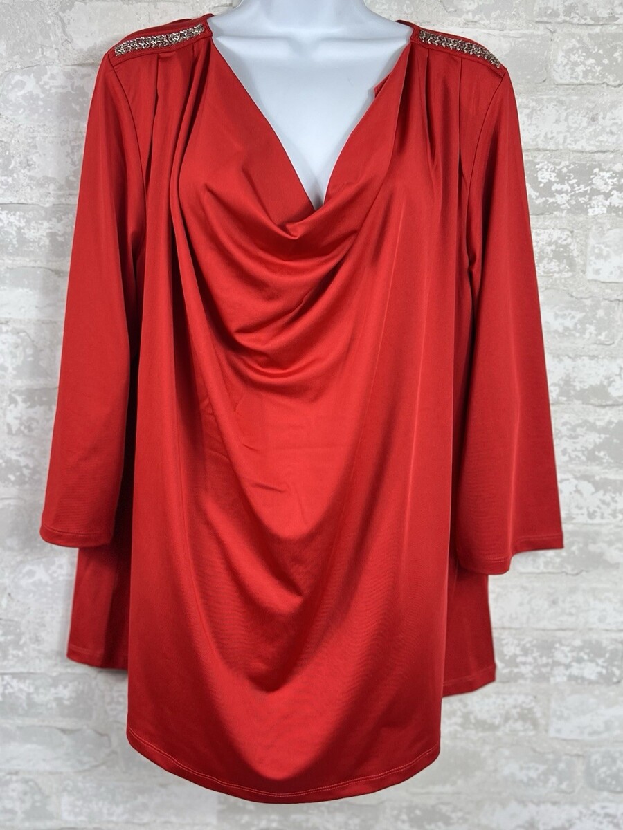 Design History Red Embellished Shoulder Cowl Neck Top Blouse 1X New