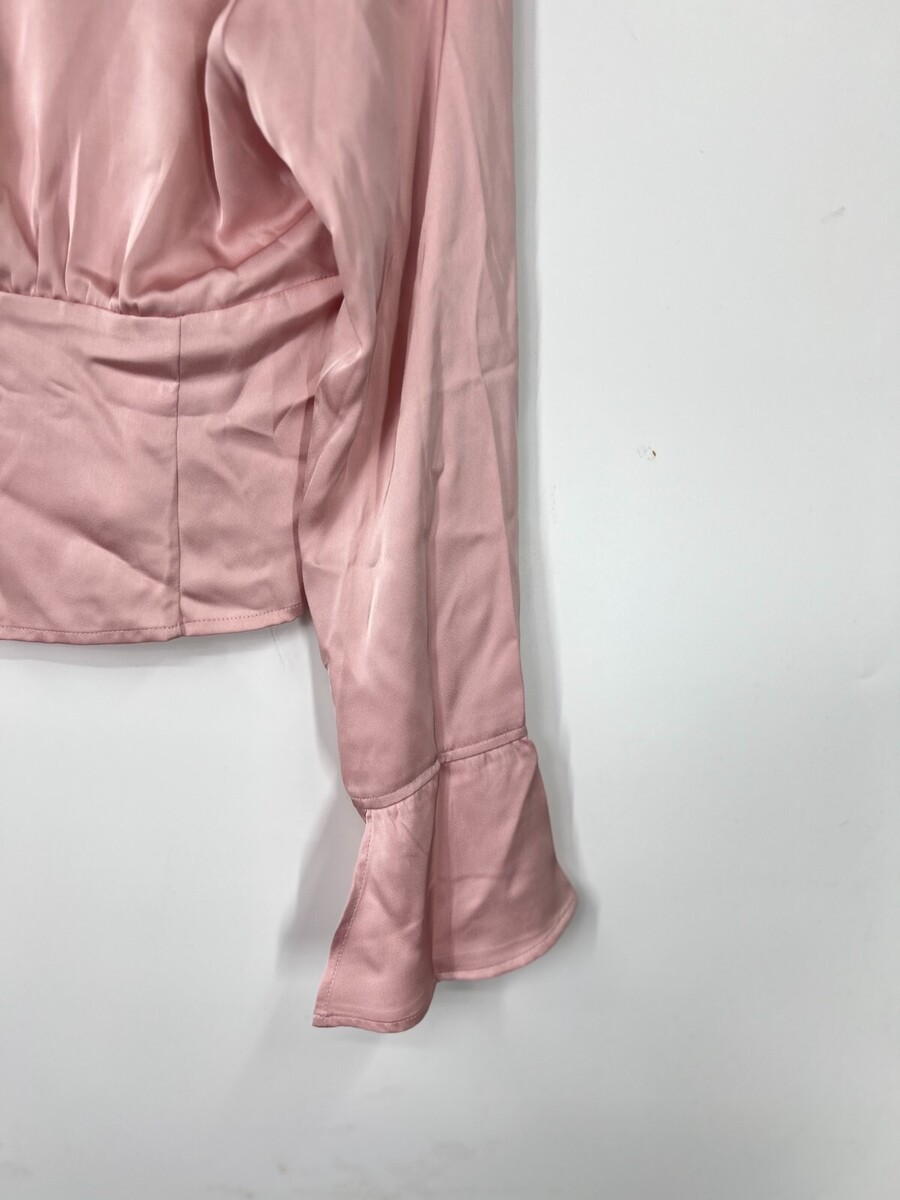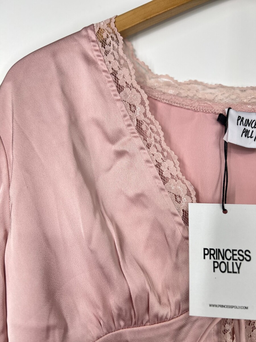 Keywords: Princess Polly, lace trim blouse, long sleeve top, crop top, pink blouse, party top, size 8, women's blouse, lace detail, bell sleeves, romantic blouse, feminine top, new with tags, blouse, top