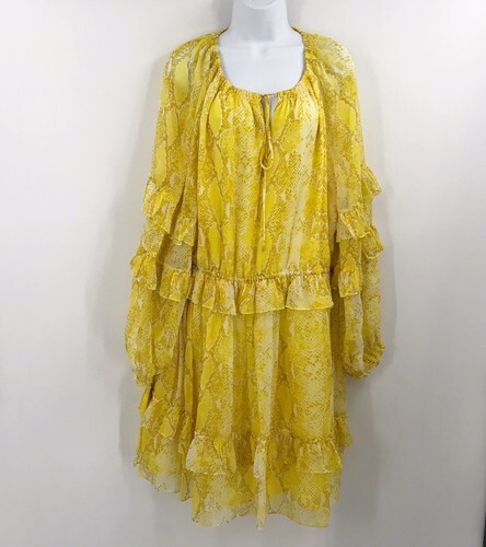 Diane von Furstenberg Haven Snake Print Silk Ruffle Dress-Size X-Large New