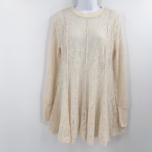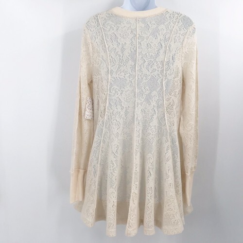 Free People Coffee In The Morning Tunic Top In White Knit Lace - Size Small New